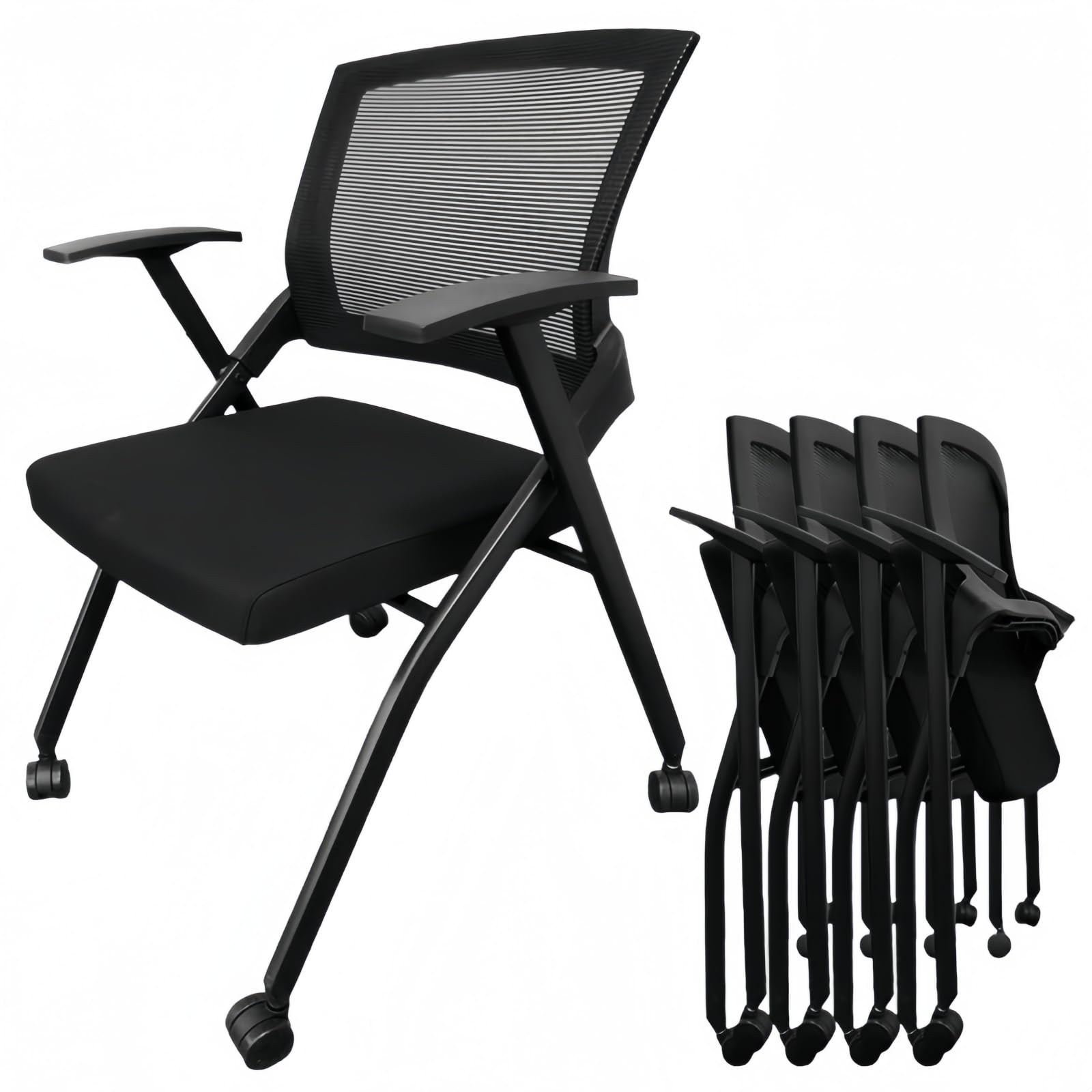 Murongun 折りたたみ椅子 4脚セット 会議椅子 キャスター付き アームレスト メッシュ背もたれ オフィスチェア ブラック