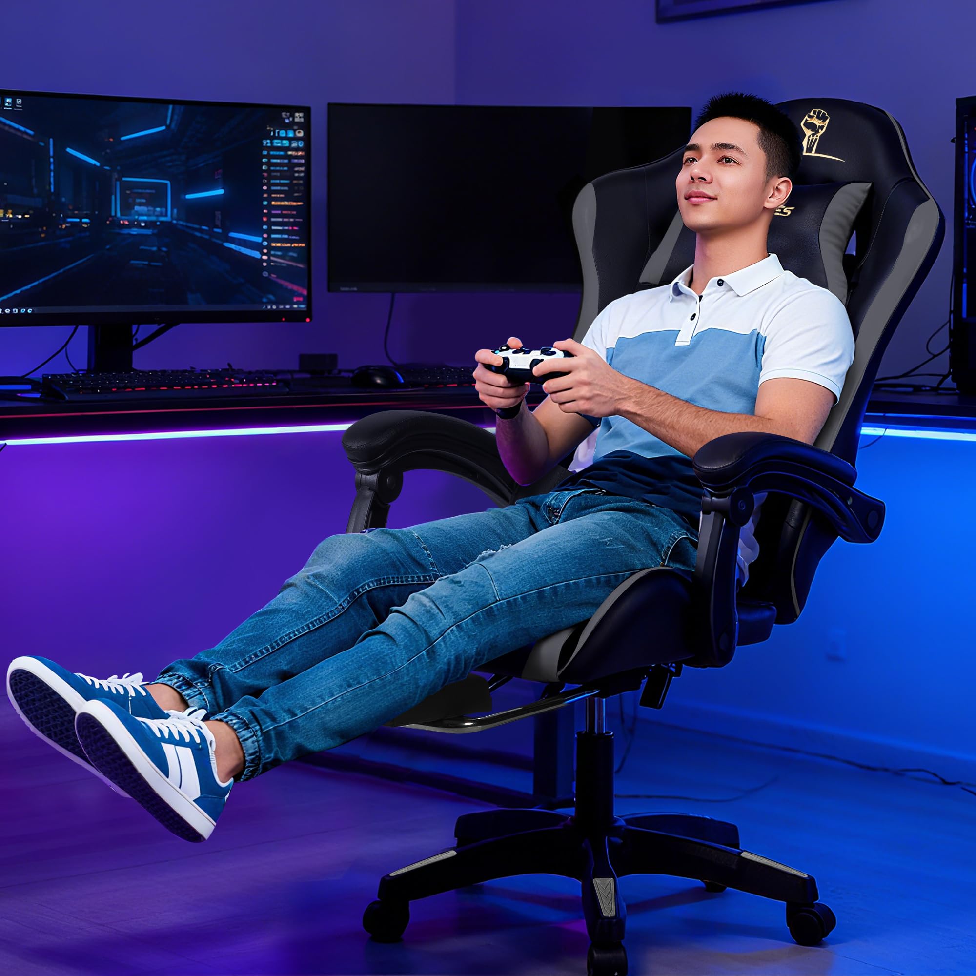 GiliMax ゲーミングチェア 伸縮可能のオットマン 135度リクライニング機能【蒸れないデザイン 座面 背もたれ】 オフィスチェア ゲーム用チェア デスクチェア パソコンチェア ハイバック テレワーク椅子 PCチェア アームレスト 座り心地よい 通気性の良い (GT-PROオットマン付き, ホワイト)