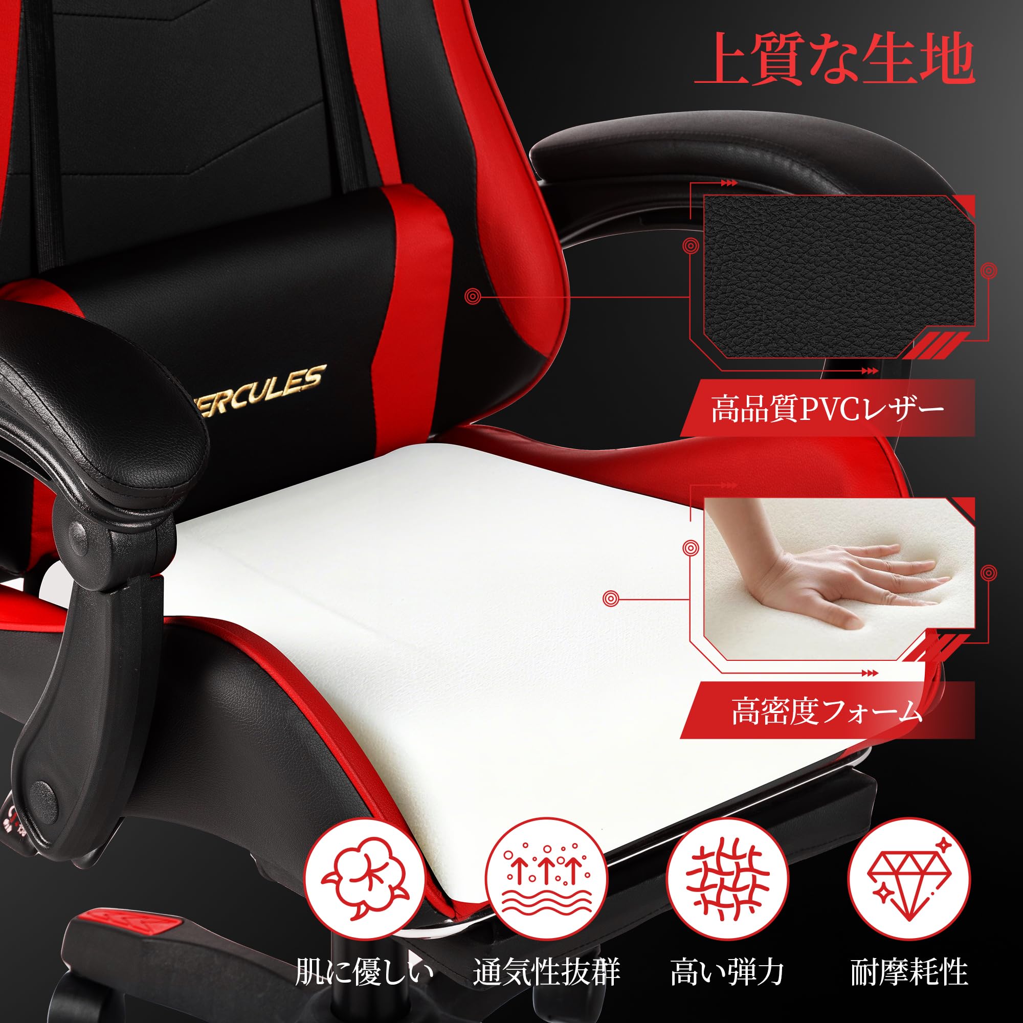HERCULES PUレザーゲーミングチェア(レッド)