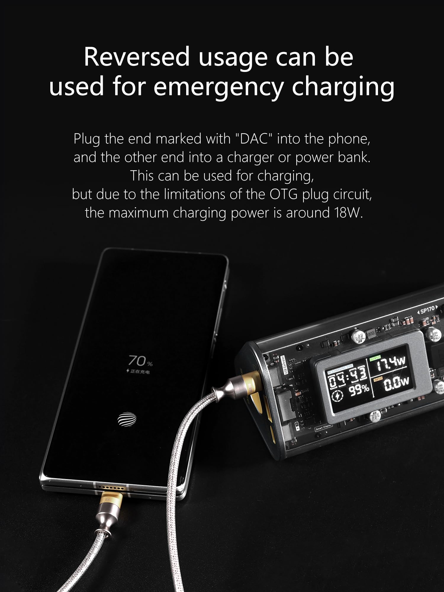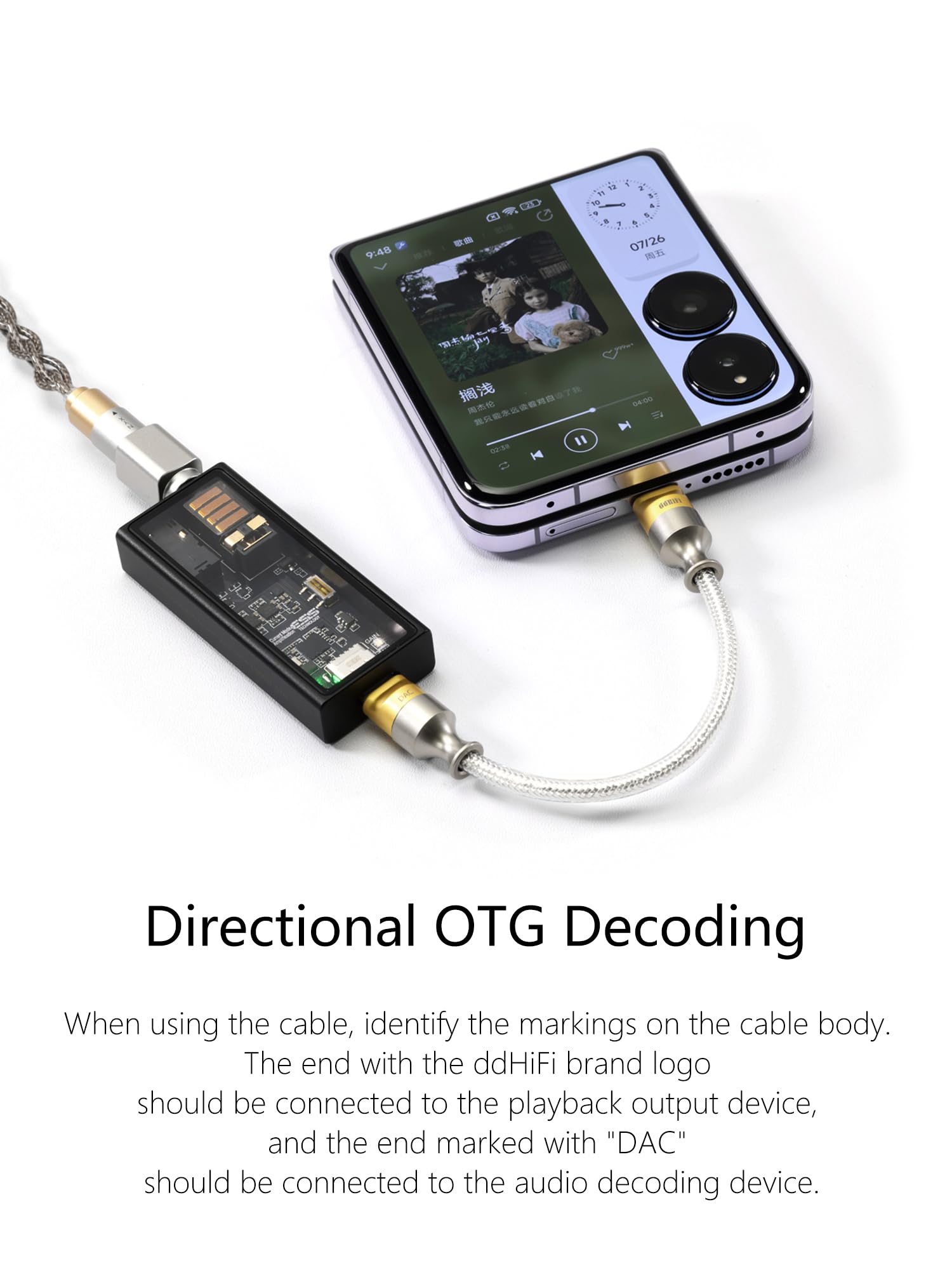 ddHiFi TC05 M2 USB-C 2.0 to USB-C OTG 50 cm データケーブル(デコード機能付き)、逆挿し使用で緊急充電が可能