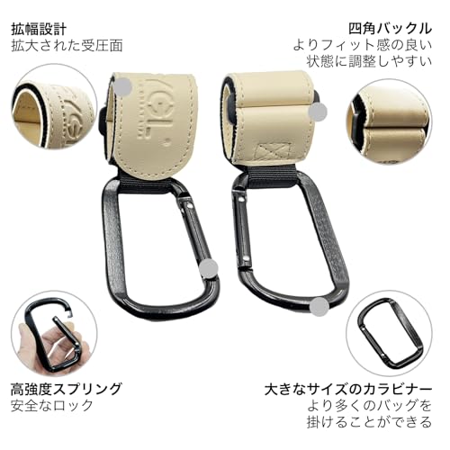 FYGL ベビーカー フック 調整可能なベビーカー フック親と旅行者のため普遍的な荷物フック スーツケース ハンガー ショッピング旅行とベビーギアの理想的なベビーカー アクセサリー - アプリコット色、2パック
