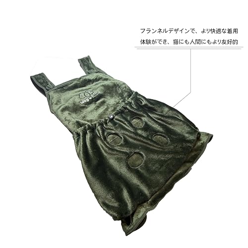 Wag&Wink 猫用 抱っこエプロン(有孔)厚手 寝袋風 カンガルーポケット 秋冬 防寒対策 防粘毛カバー 猫を胸に抱くエプロン 墨緑/サックスブルー フリーサイズ (ダークグリーン)