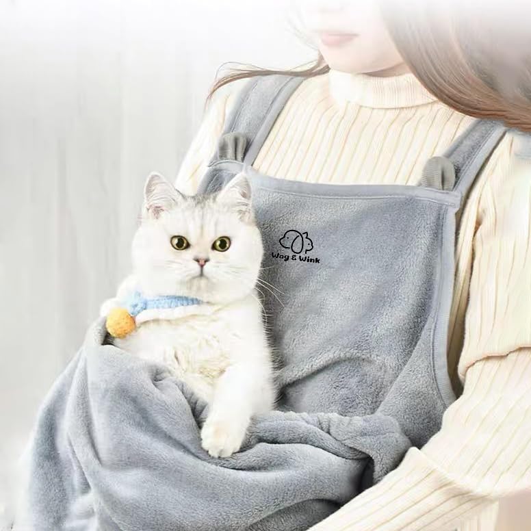 Wag&Wink 猫用ペット抱っこエプロン 無孔 厚手 寝袋 ペット エプロン 防寒対策 抱っこ用エプロン ポケット 猫 抱っこ紐 抱っこ エプロン 穴 猫かきエプロン 猫服を抱 防粘毛カバー 猫を胸に抱くエプロン 猫 エプロン 猫キャリアエプロン 抱っこ 穴 ねこ だっこ よだれかけ ウェアラブル猫キャリア 小型犬用猫おくるみ 屋内屋外旅行用 (グレー)