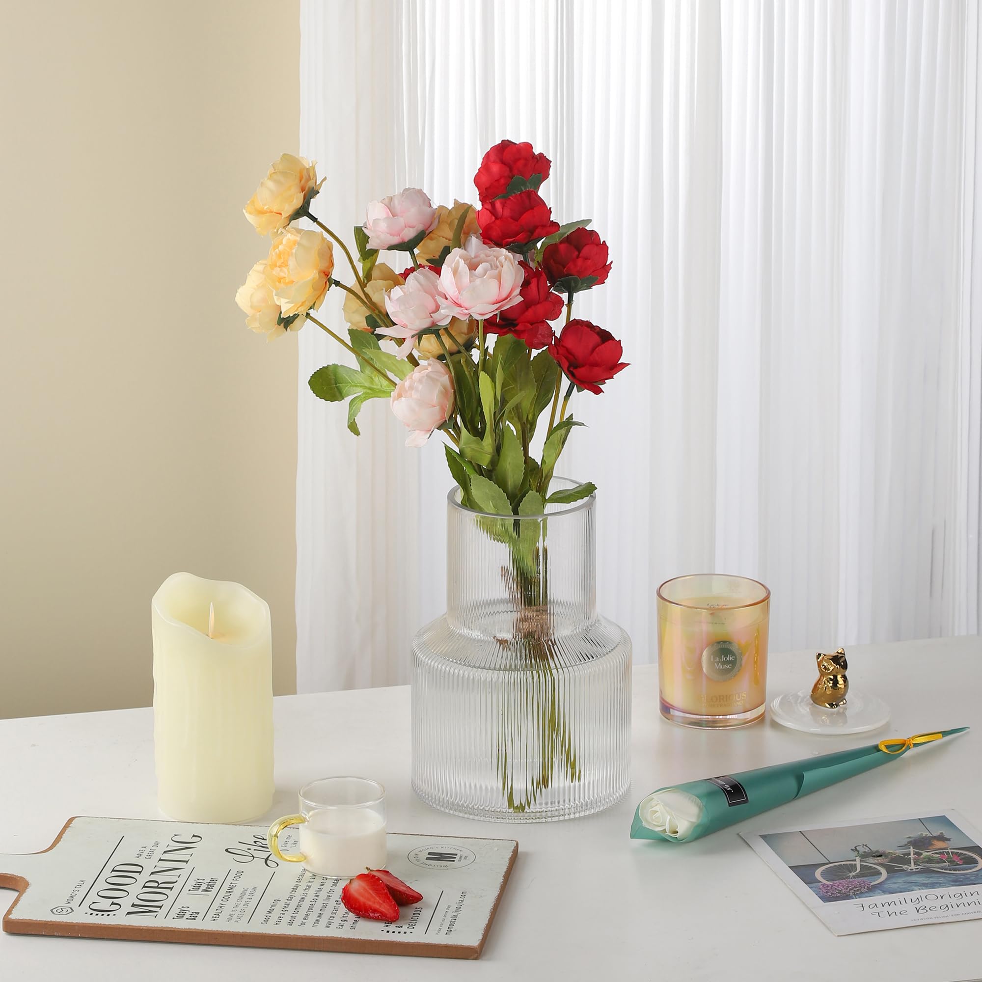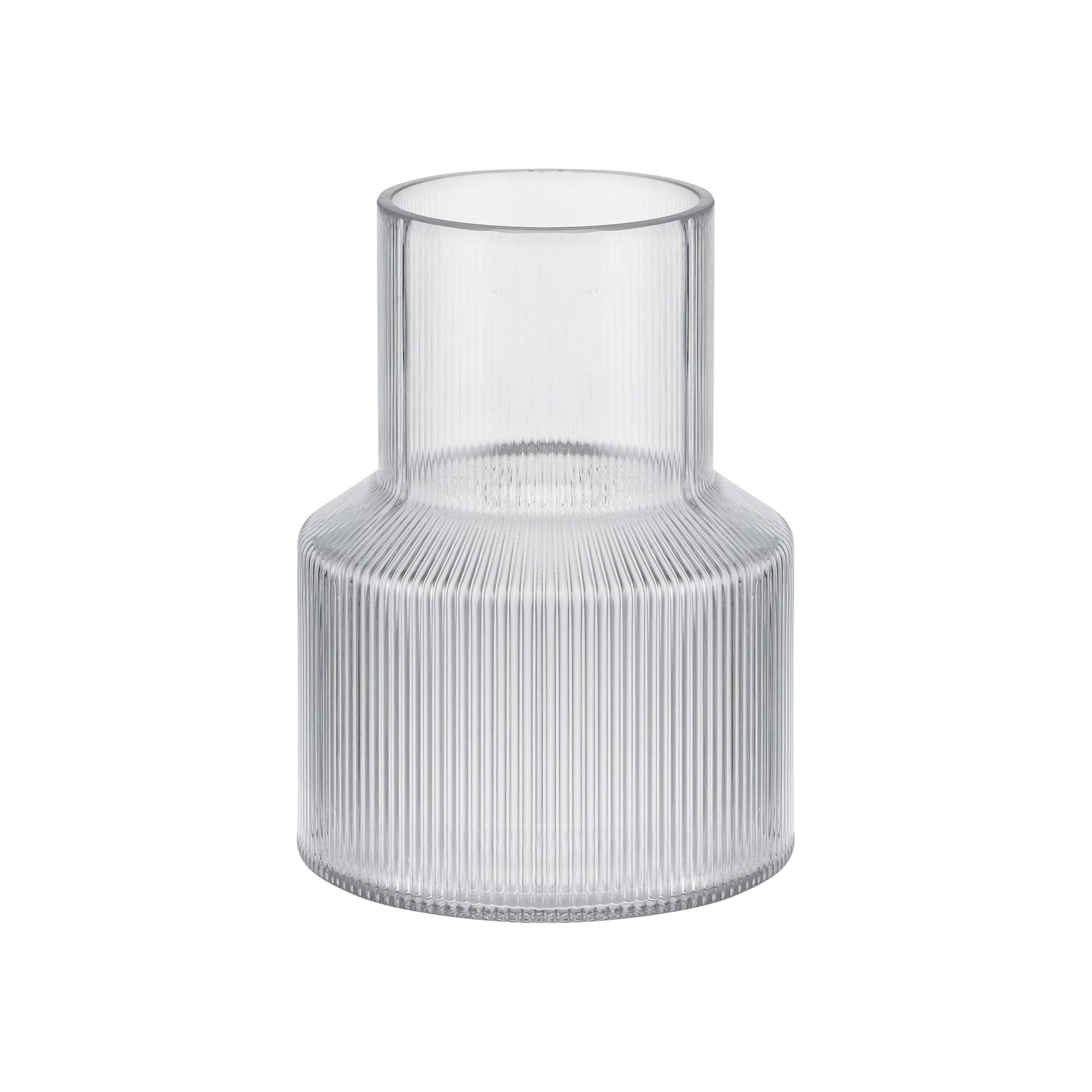 リブ加工 ガラス フラワーベース, クリア, シリンドリカル型, モダン デザイン, 花瓶, インテリア装飾用