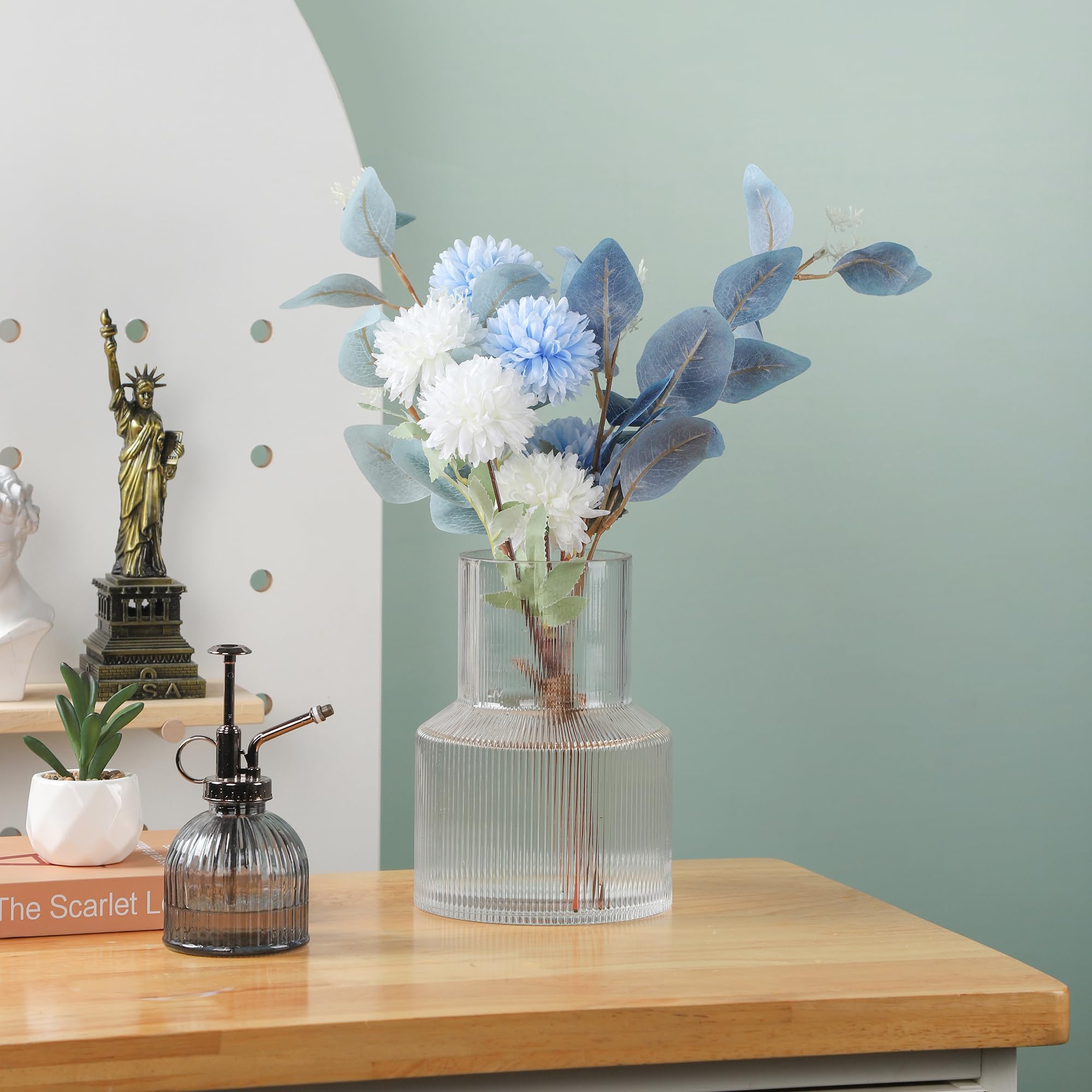 ノーブランド品フレンチスタイル手作りフルートガラス花瓶,おしゃれ花器,リビング、寝室、オフィスなどの装飾に適しています並行輸入品, 11x11x20cm, J-1940-20 [並行輸入品]