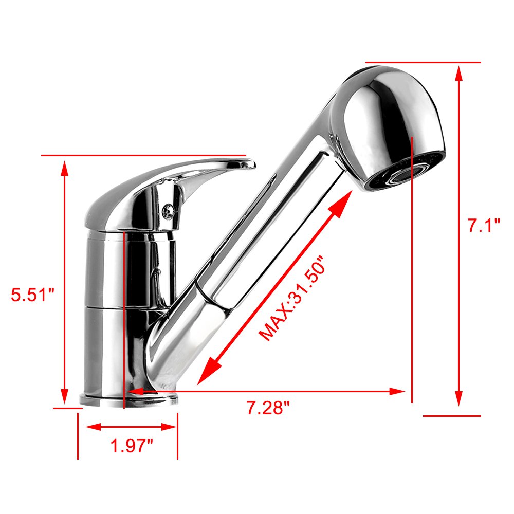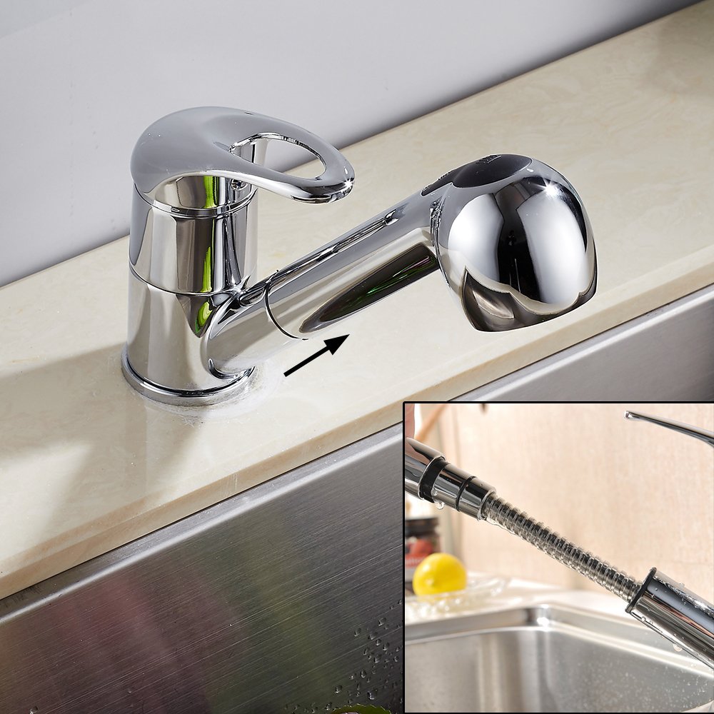 キッチン水栓 シングルレバー混合栓 ブラッシュドニッケル 引き出し式 60cm伸縮ホース付き プルダウンスプレー