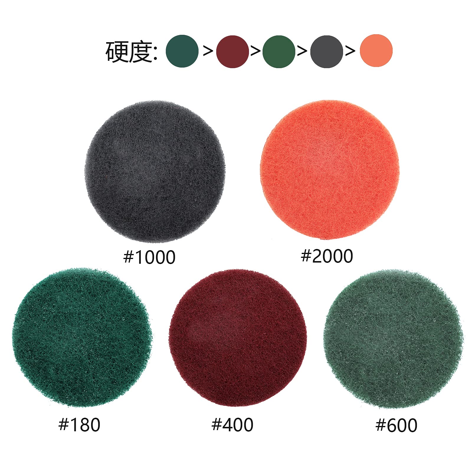 DanYun 125mm 精練パッド ポリッシャー交換用 #180 - #2000 5枚セット 研磨パッド 工業用 荒目 中目 細目 電動ドリル 研磨仕上げ 磨きツール 交換用 ( 180 400 600 1000 2000 5粒度 各1枚) 塗装面の研磨、金属表面の錆取り 研磨、木工生地研磨などに