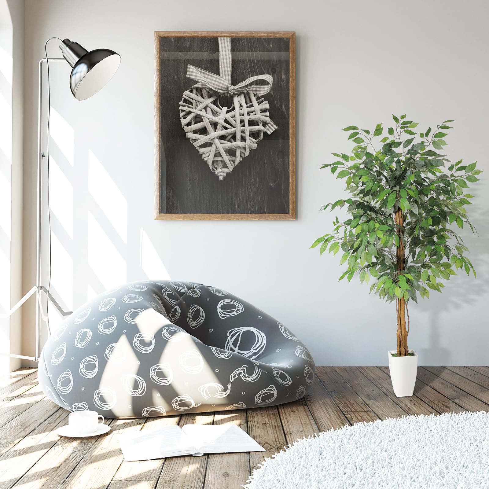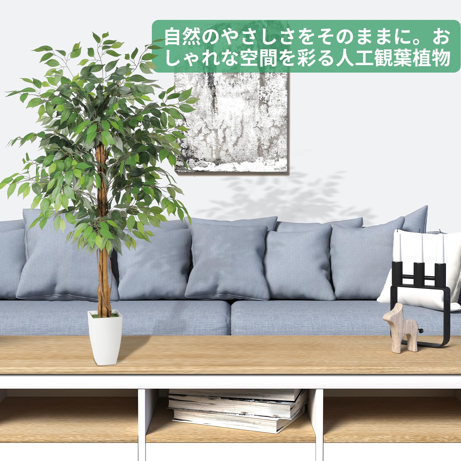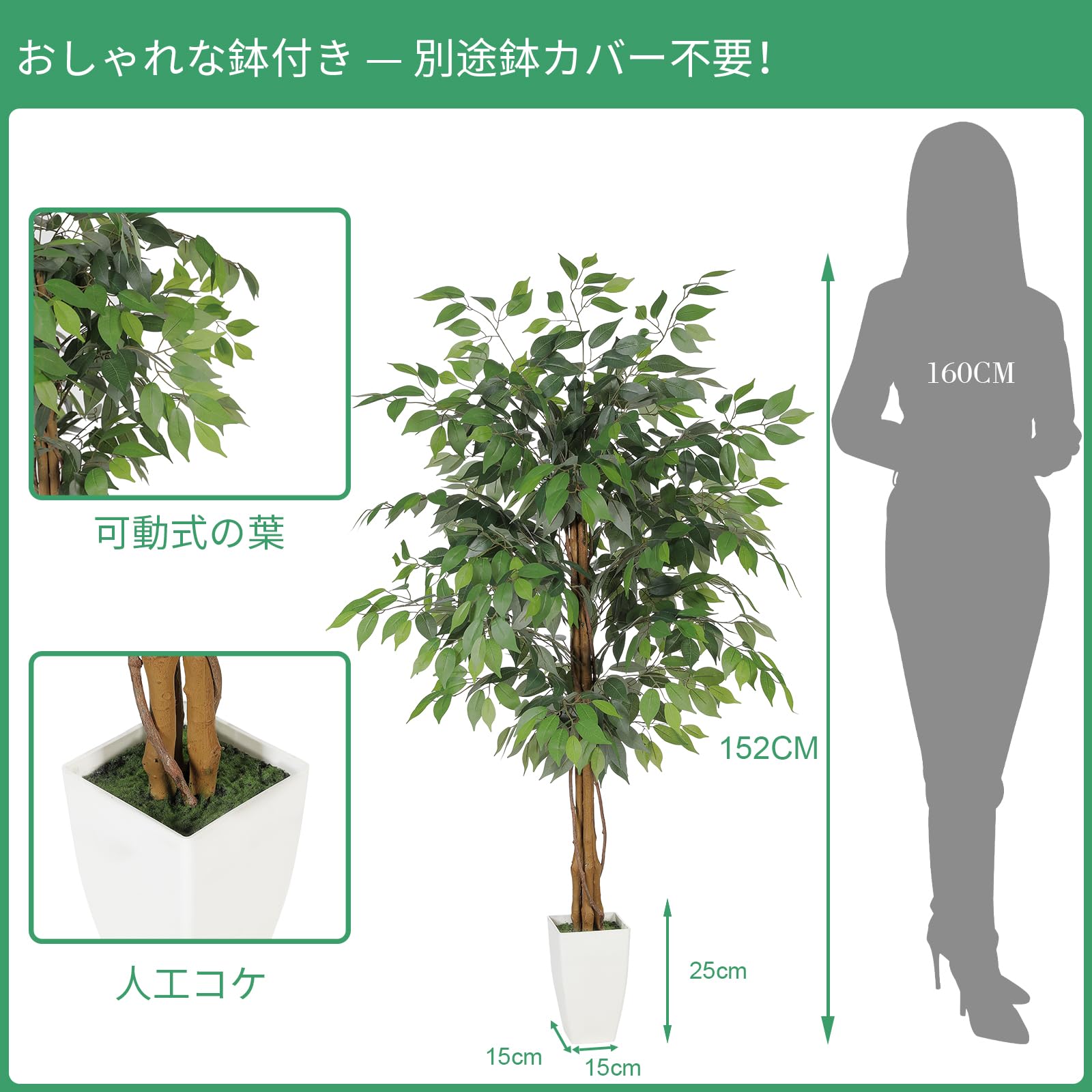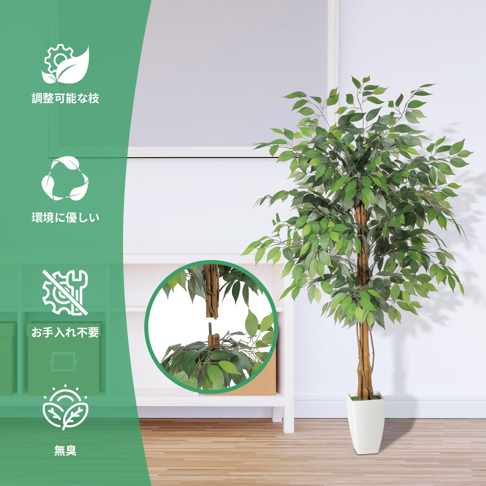 FEELEAD フェイクグリーン ベンジャミン 高さ約150cm 観葉植物 人工観葉樹 大型 造花 インテリア 室内 オフィス リビング ダイニング 鉢付き おしゃれ 人工植物 開店祝い 新築祝い プレゼント ギフト 母の日