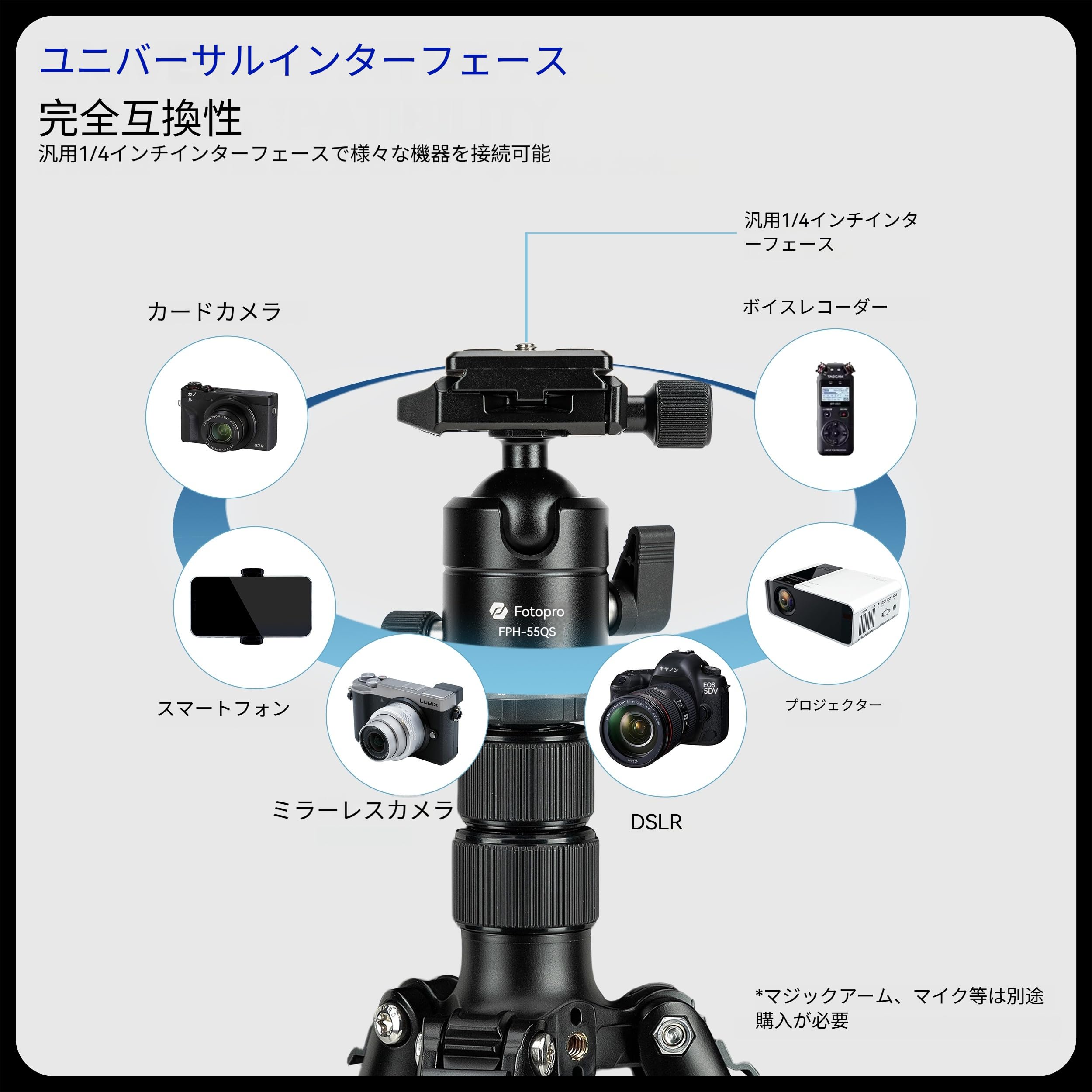 Fotopro 140CM 旅行小型三脚 360 ° ボール ヘッド軽量コンパクト アルミニウム三脚カメラ電話マウント負荷 3KG FY-810 ブルー