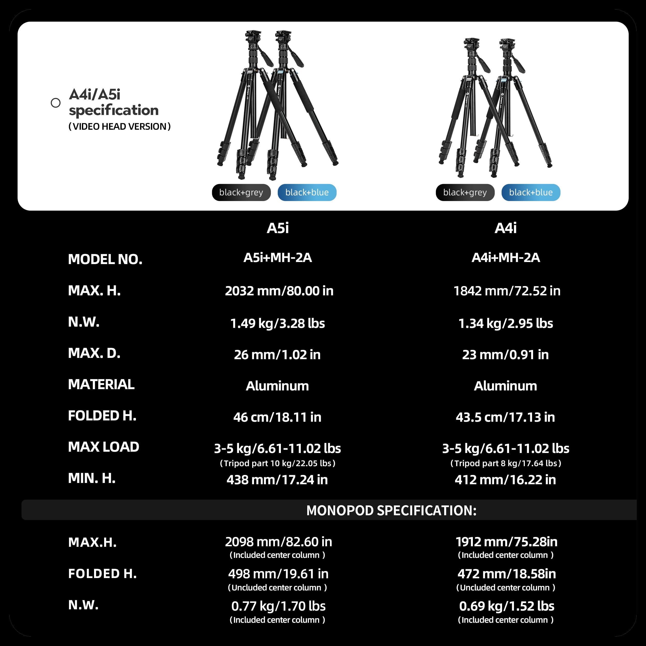 Fotopro アルミニウム合金 三方向パンティルトヘッド 188cm 三脚 スマホマウント対応 最大耐荷重3kg デタッチャブルヘッド コンパクトデザイン 旅行用 ビデオカメラ デジタルカメラ用 DIGI-9900