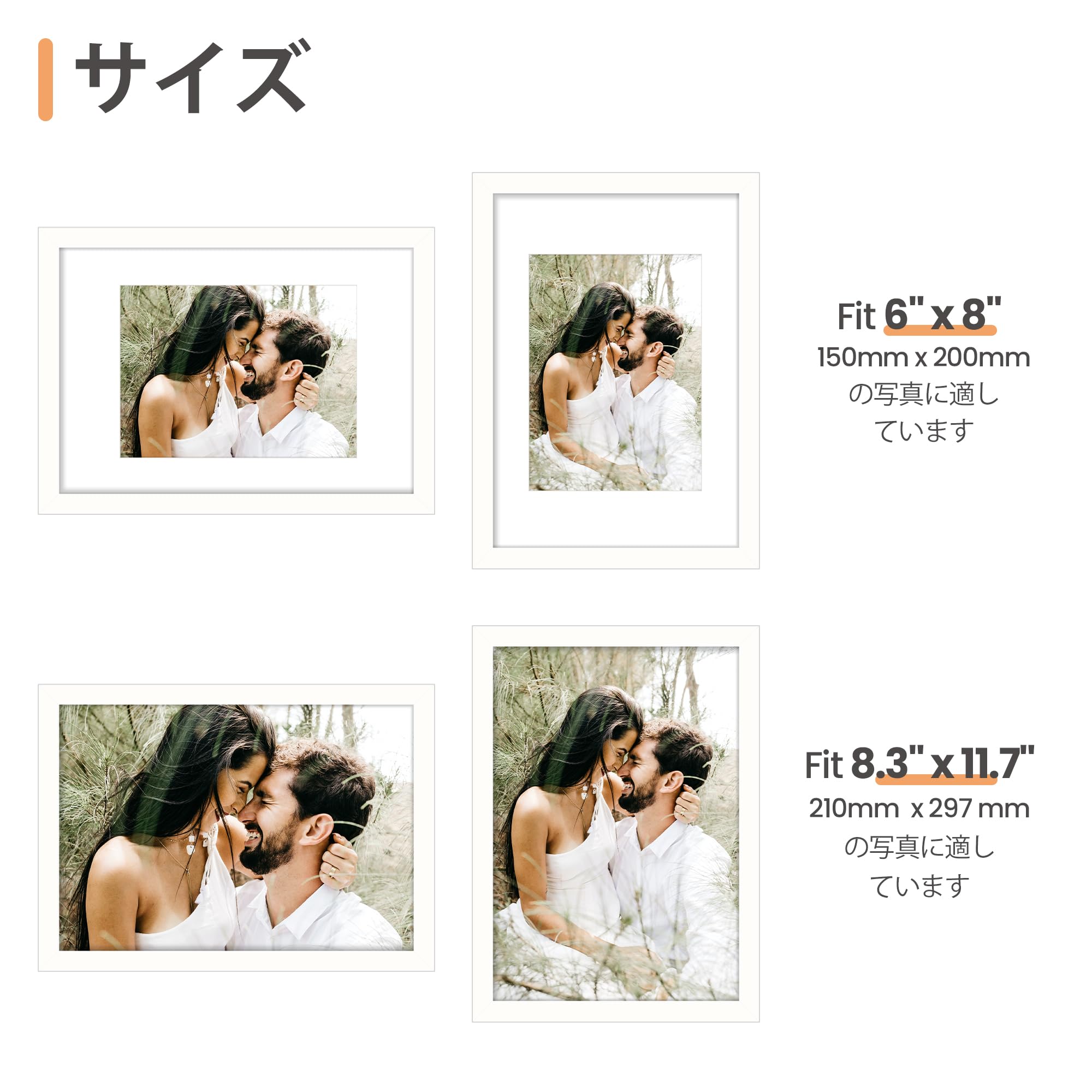 Fun Memories 6x8 木製フォトフレーム 5x7マット付き 卓上/壁掛け 手作り丸角