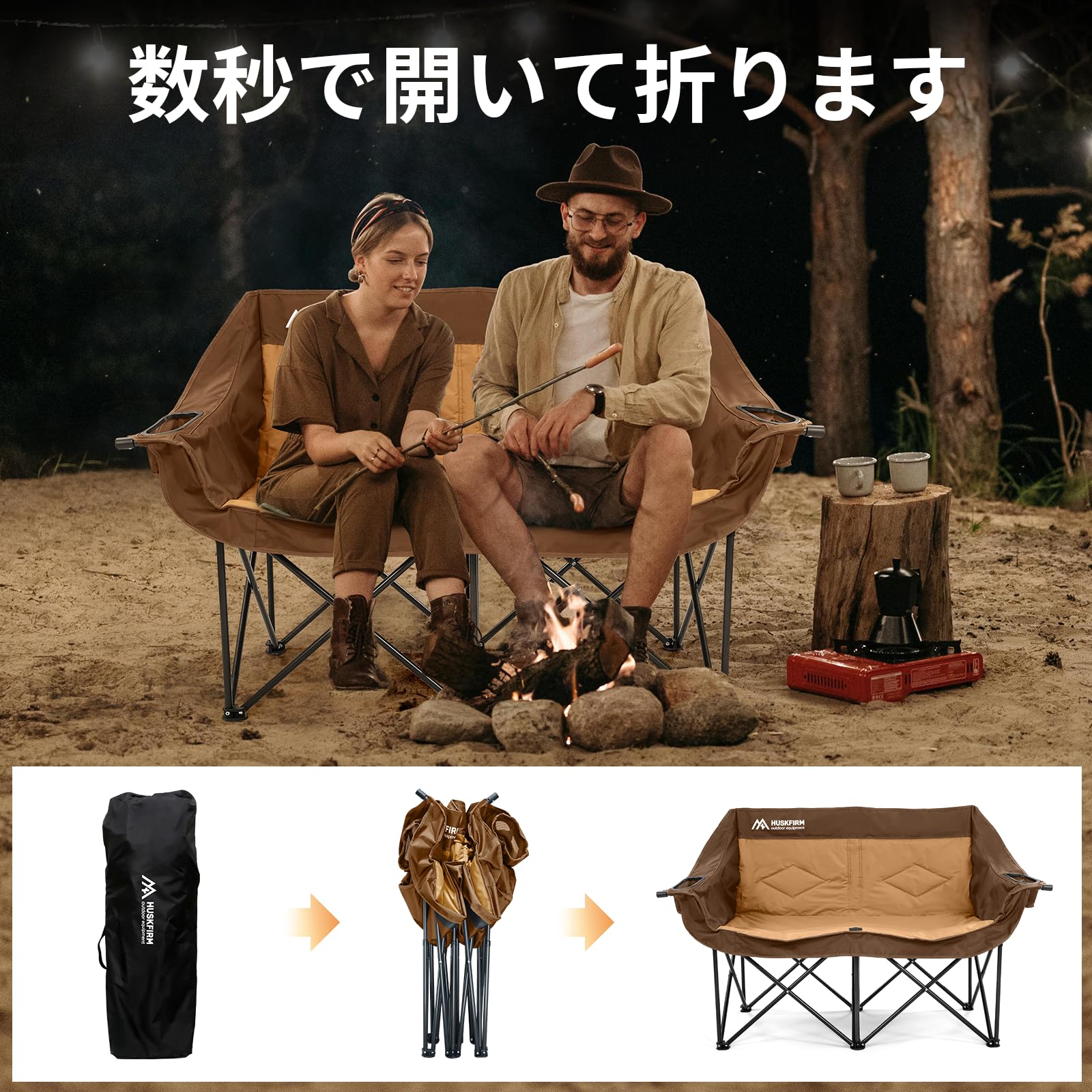 BOOSDEN キャンプチェア アウトドア チェア 耐荷重150KG カーミットチェア 折りたたみ椅子 軽量 携帯便利 持ち運び 室外椅子 折り畳み椅子 コンパクト ロータイプ シンプル カーキ 2点セット