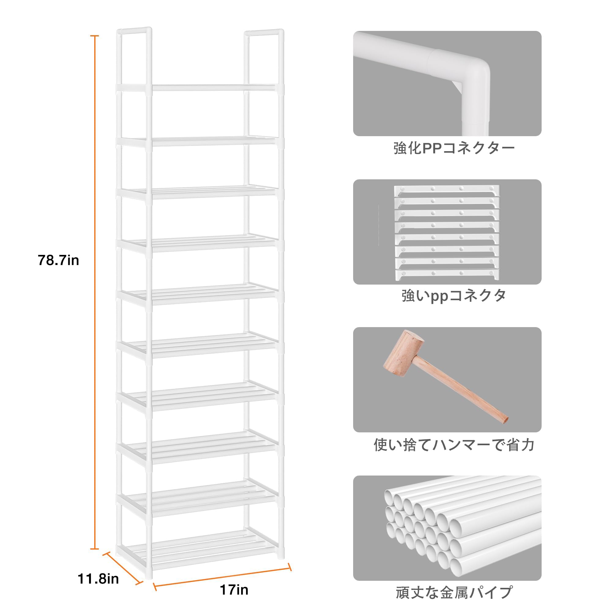 OYREL シューズラック 10段 金属製 頑丈 靴 ラック|スリム省スペース 20 足収納可能 玄関/クローゼット対応 靴棚 組立簡単 ホワイト 幅 43× 奥行 30× 高さ200cm