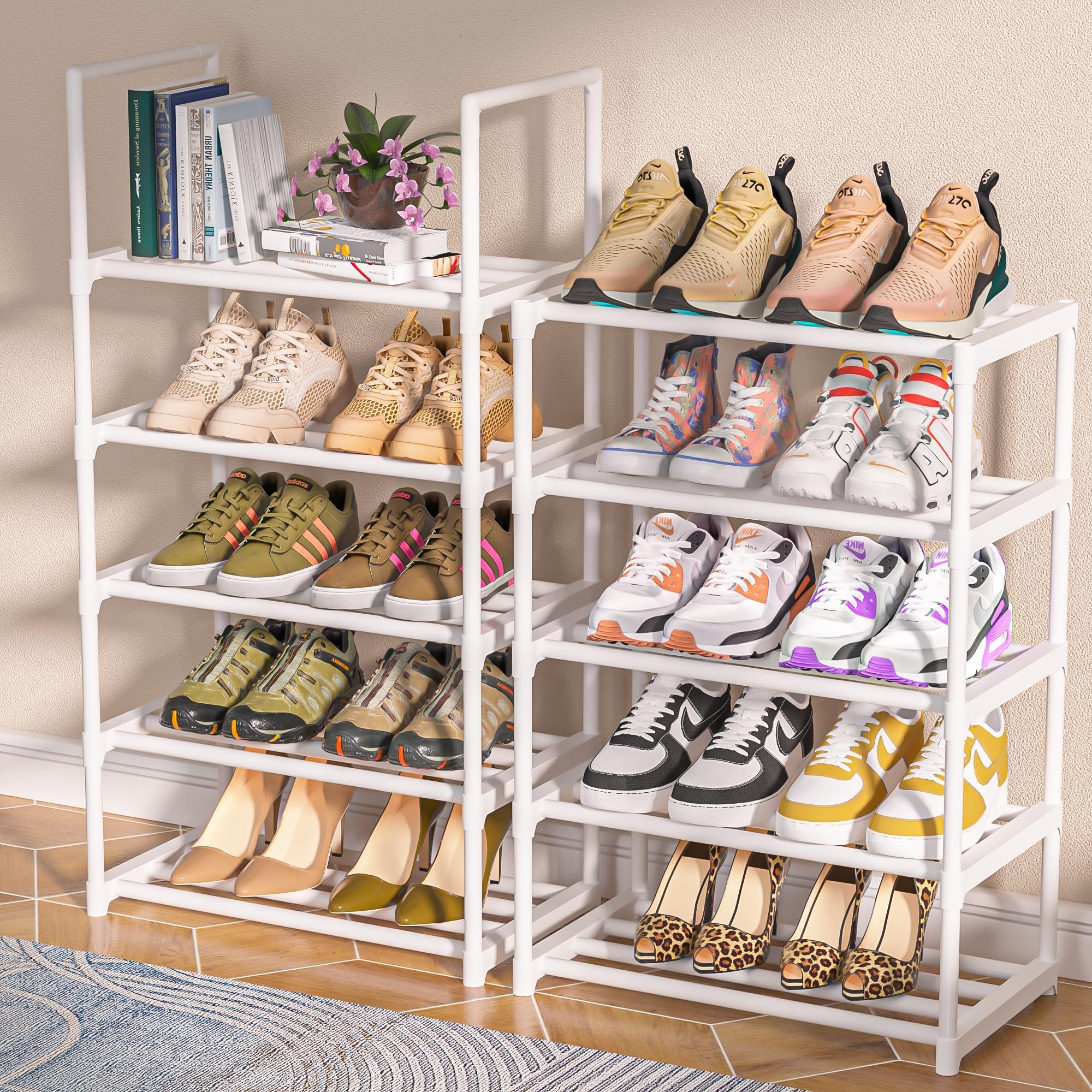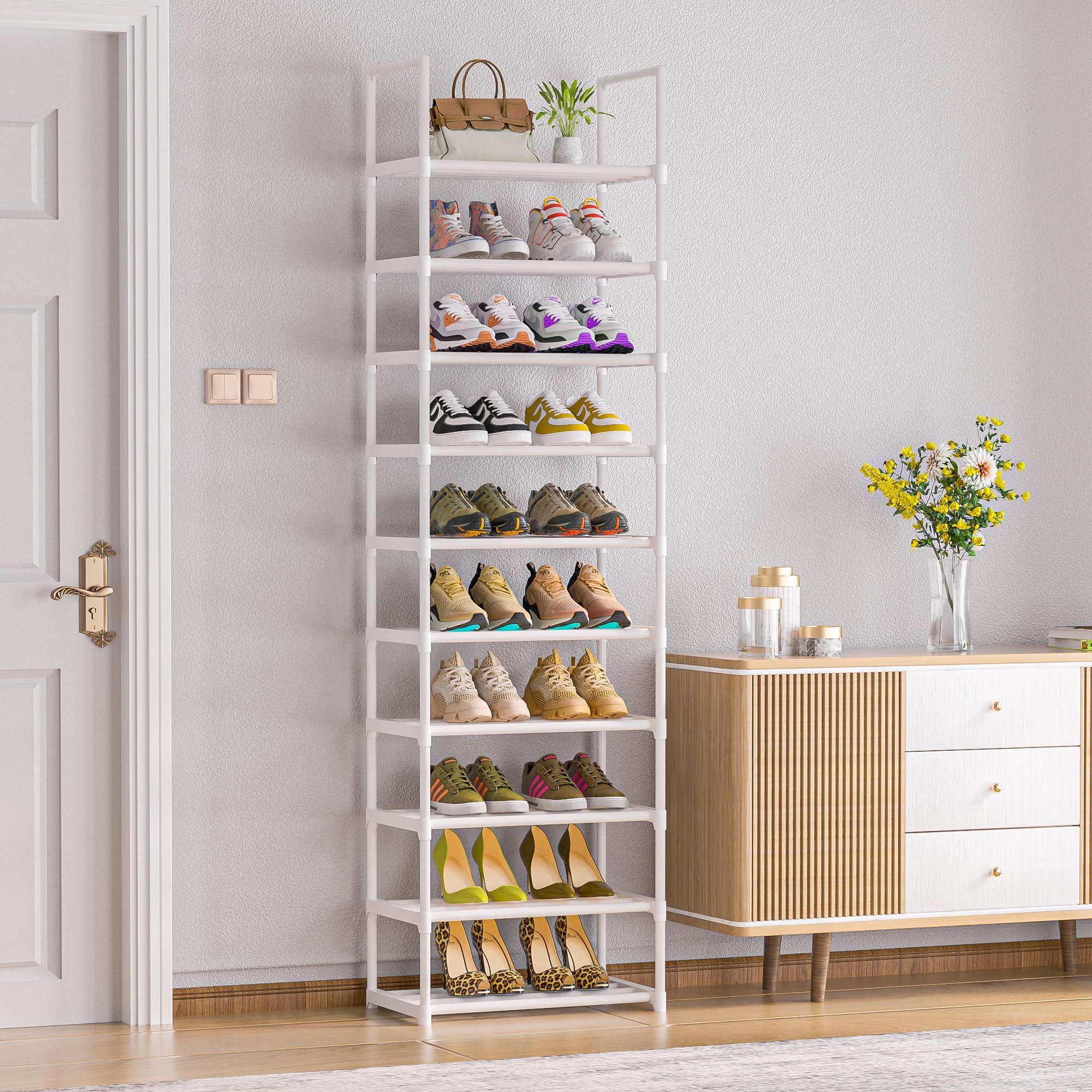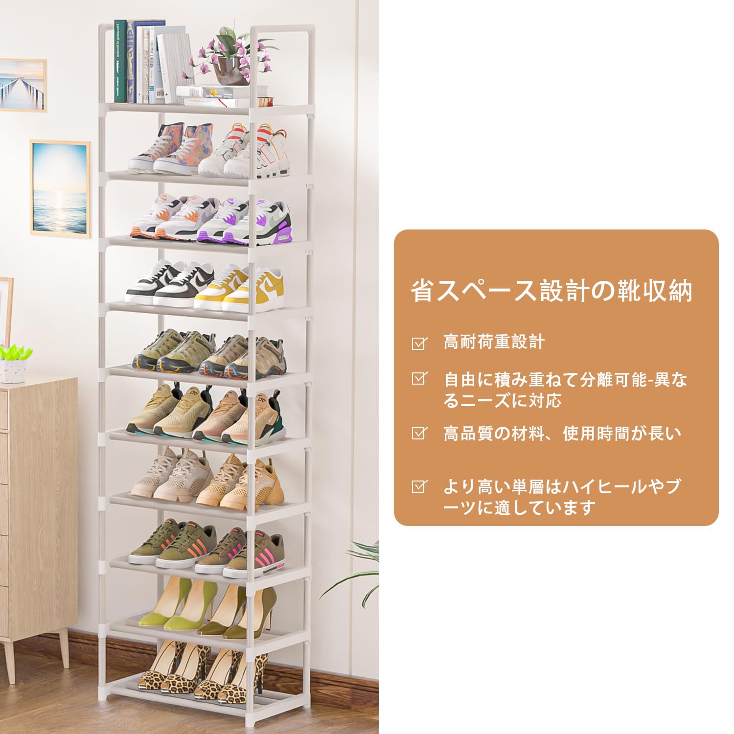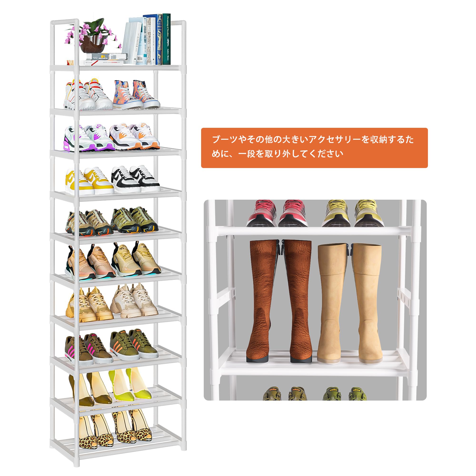 BrFoYu シューズラック 10段 靴収納 靴箱 スリム フック付き 分割可 シューズラック 省スペース 組み立て式 大容量 不織布 狭い 玄関 廊下 クローゼット アパート用 靴棚 下駄箱 靴入れ (10段 ホワイト)