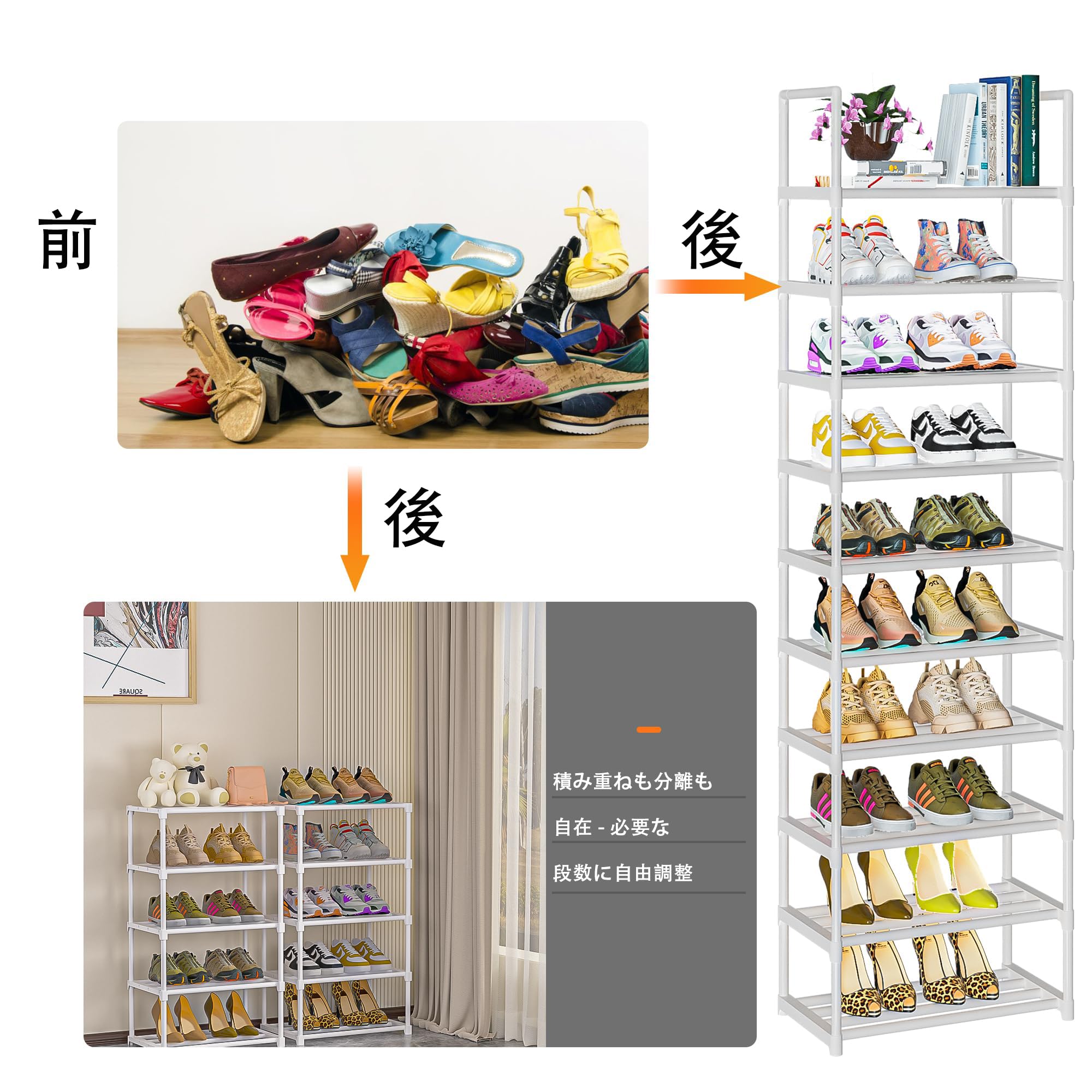 APICIZON シューズラック 靴収納 シューズラックスリム 玄関に靴を効率収納 靴だな 棚 省スペース 下駄箱 不織布 鉄パイプ 廊下 アパート用 (ブラック、10段)