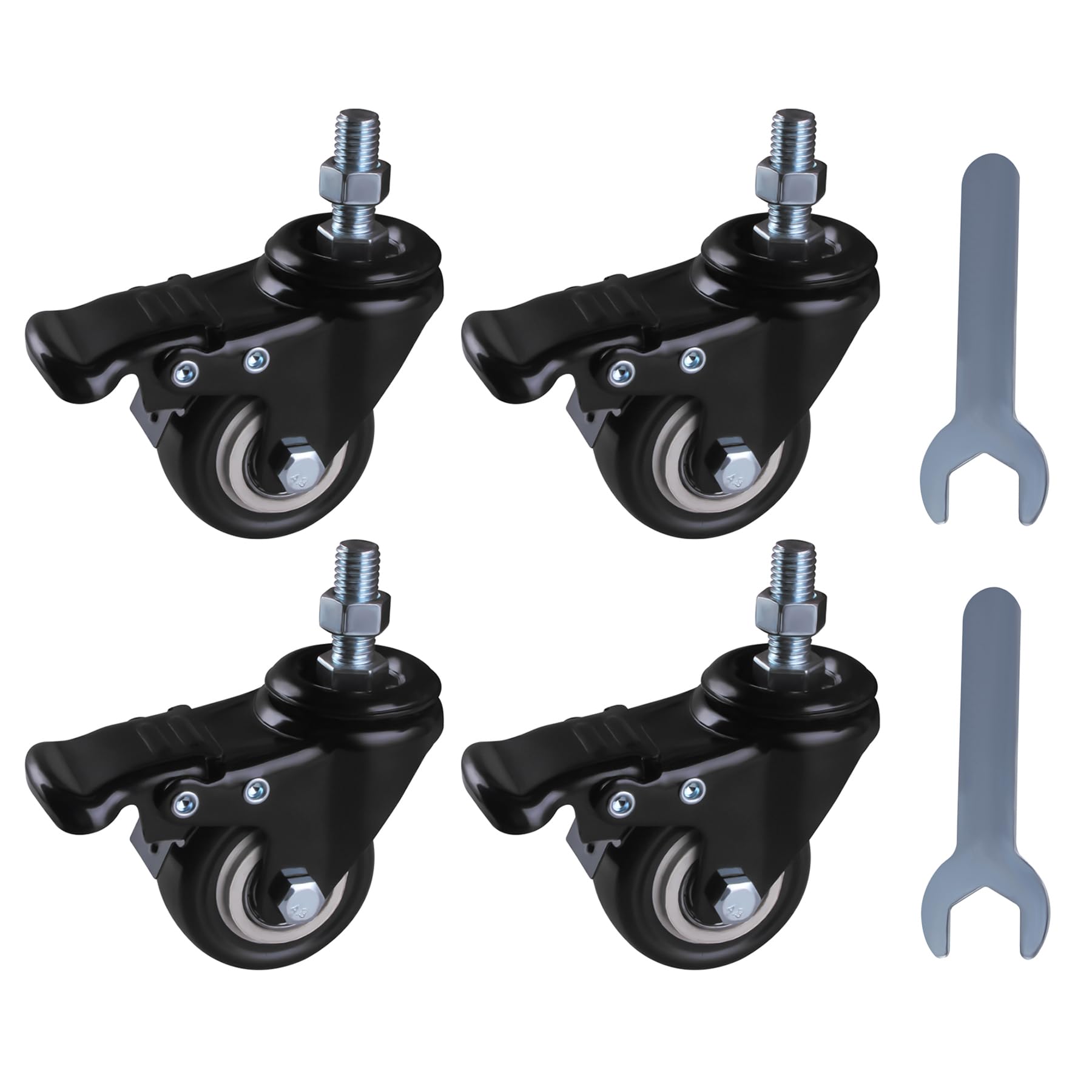Zalslei キャスター ネジ式 自在式 M8 ブレーキ付き 車輪径1.25インチ(50mm) 耐荷重64kg 360度回転 4個セット TPEゴム輪