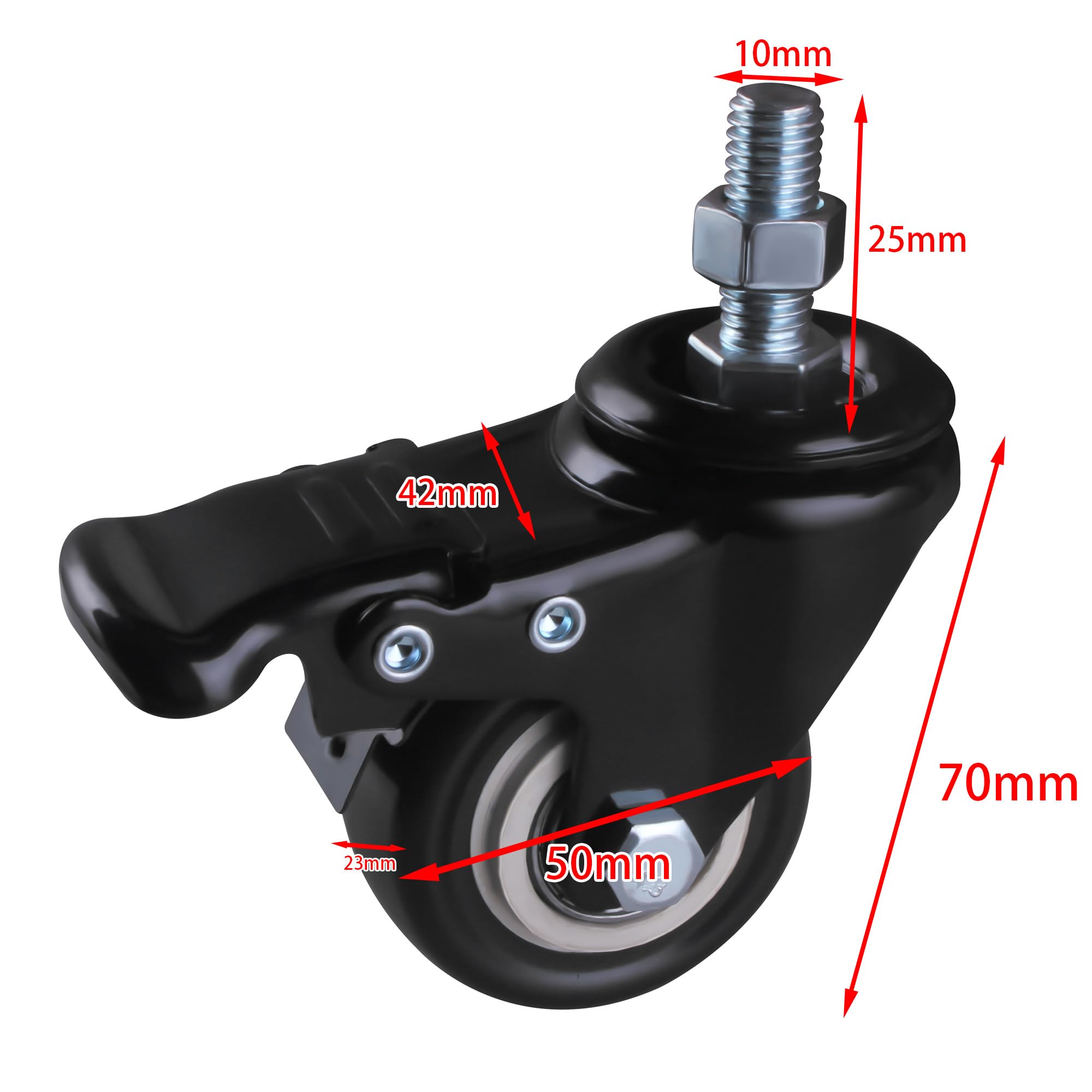 KITISUNI 自在キャスター ねじ込み式 4個セット 車輪径 50mm M10×25mm 旋回式キャスター ブレーキ付き 車輪 家具用 交換用 静音 頑丈 耐久性