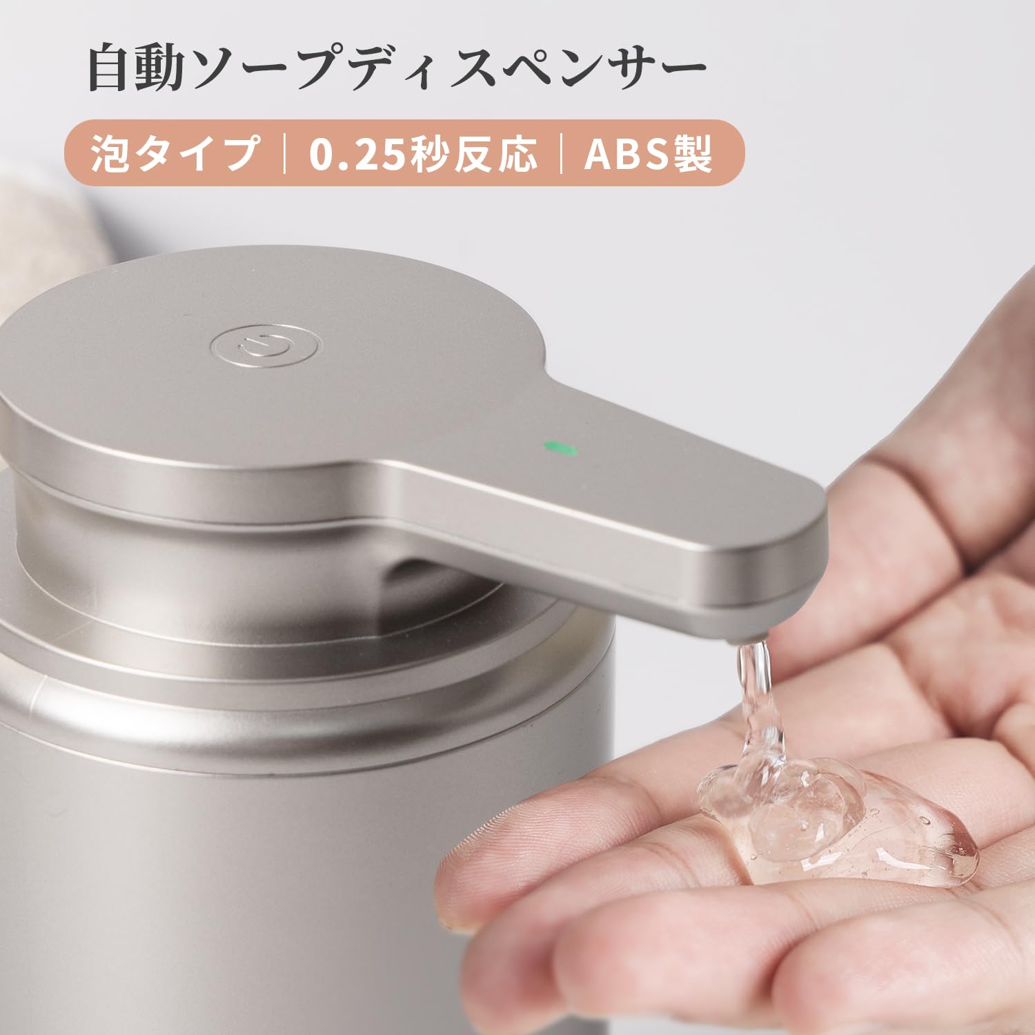 ソープディスペンサー 自動 泡 2段階 手洗い オートディスペンサー 充電式 ハンドソープディスペンサー 食器洗剤 ハンドソープ 台面 トイレ キチン シルバー X20 plastic silver liquid