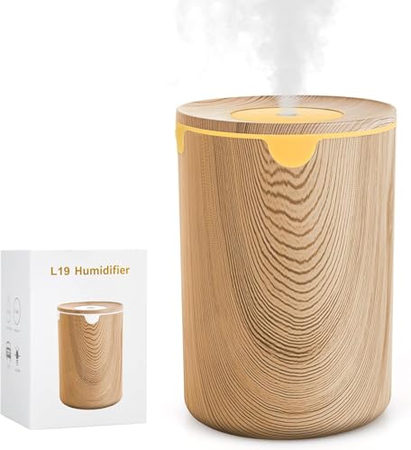 加湿器 小型 卓上 アロマ対応 除菌 卓上加湿器 木目調 LEDライト 超音波 静音 大容量320ML 車載 USB給電 軽量 持ち運び便利 コンパクト 自動停止機能 空焚き防止 2段階ミストニ水漏れ防止 オフィス/部屋/寝室/車用/家庭用 (木色)
