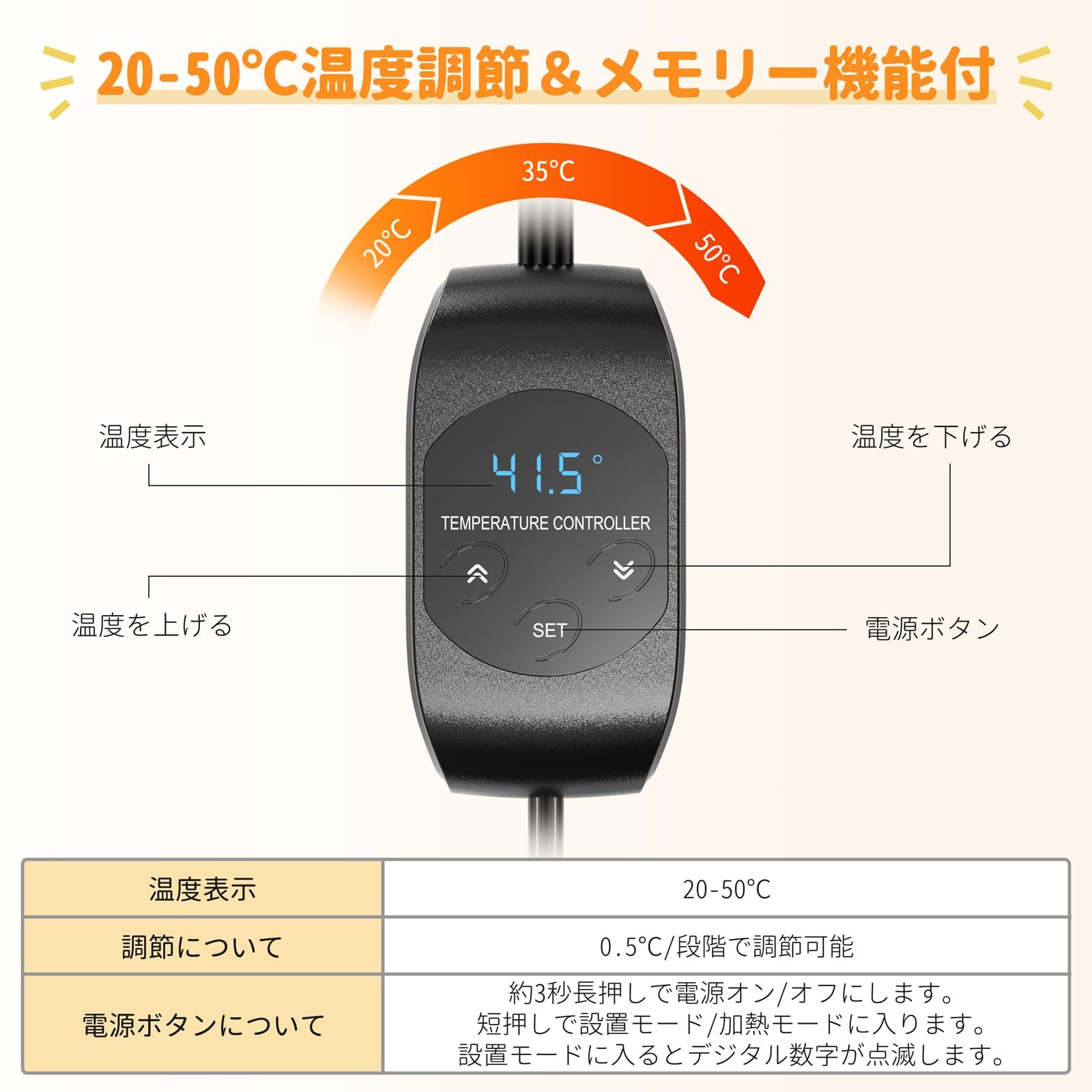 Inspvllu 爬虫類 ヒーター 42×28cm パネルヒーター 20W ハムスター/亀/両生類/小動物/植物用 ヒーターマット 20℃~50℃恒温 0.5℃ずつ調節 デジタル温度表示 過熱保護装置付 冬対策 PSE認証済 取扱説明書付 L