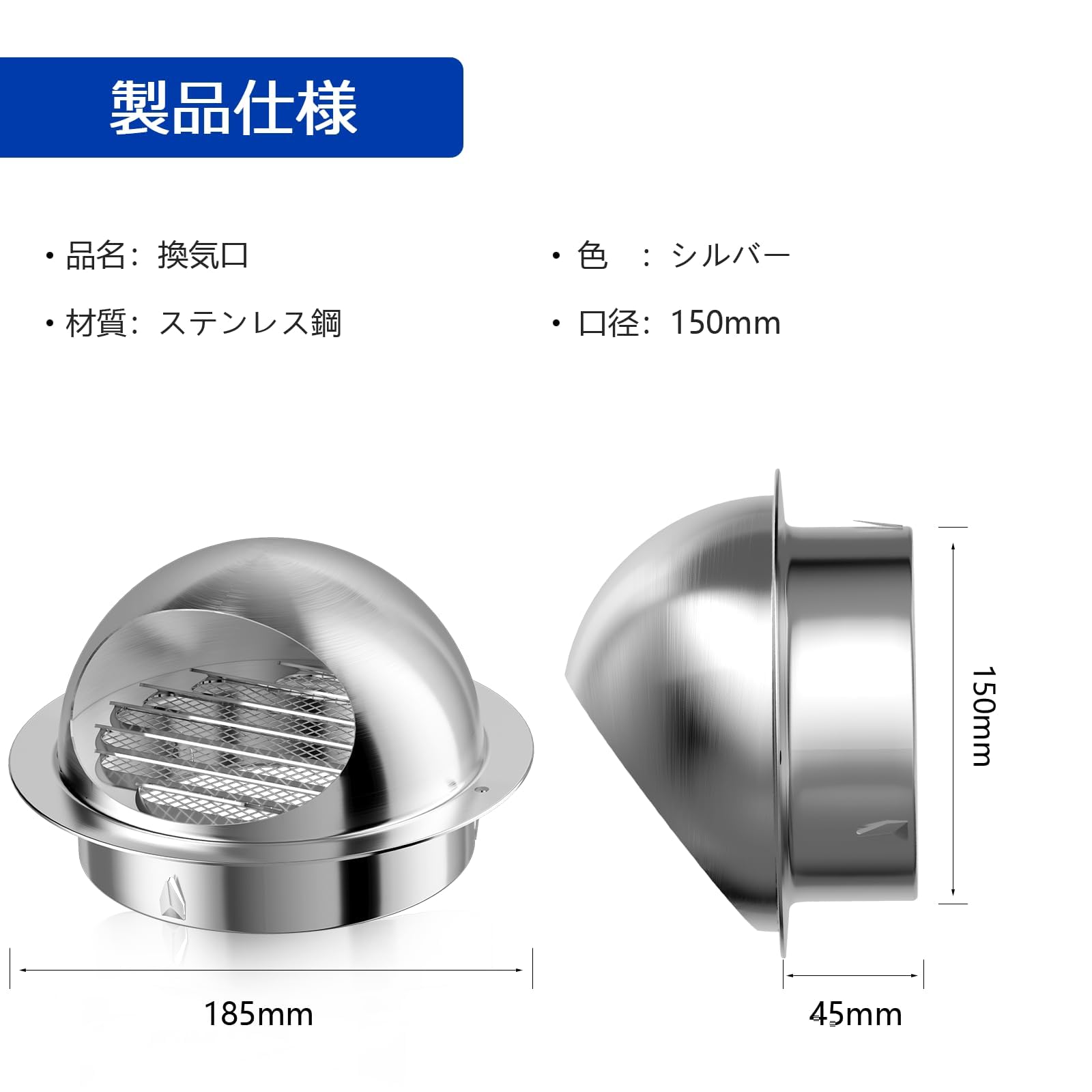 Hon&Guan ダクトファン ステンレス 【インボイス制度登録店】 丸型フード付 ガラリ 防虫網付 (150mm対応)