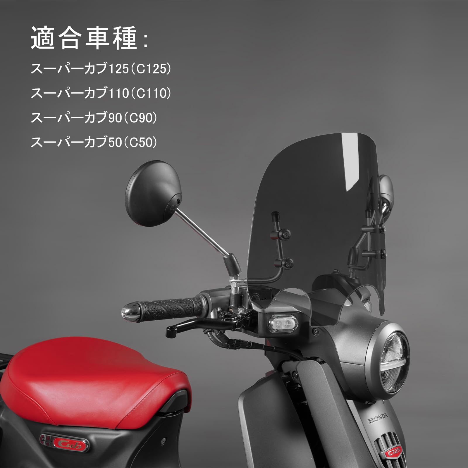 Entrotech ホンダ リトルカブ スーパーカブ(C110/C125) ウインドスクリーン ウインドシールド フロントグラス 風防 バイク クリア スモーク オートバイ用 風防 バイクフロントガラス オートバイ 延長式 日本語説明書付き (スモーク, 40cm)