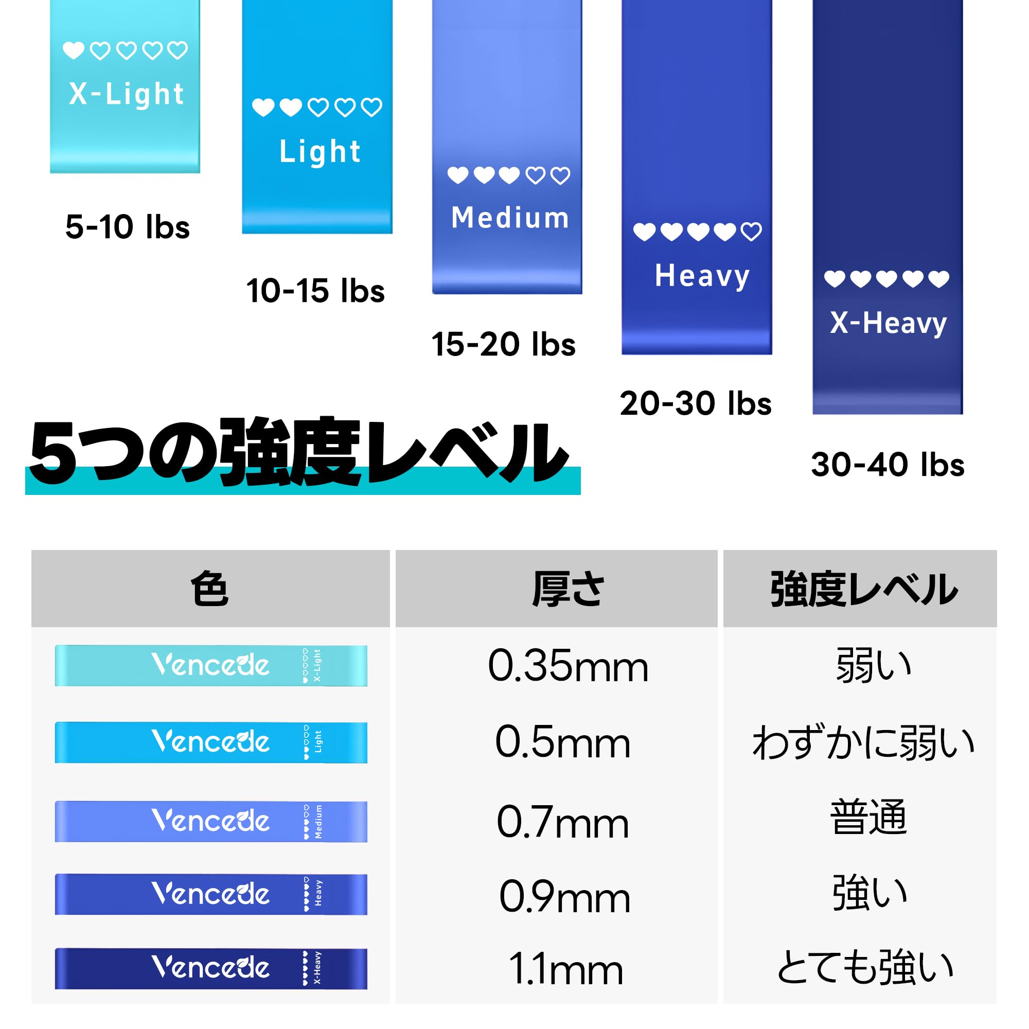 トレーニングチューブ ゴムチューブ ゴムバンド ヒップバンド 美尻バンド 筋トレ 美尻 美脚 桃尻改造 ヨガ エクササイズバンドドセット 5つの異なる強度 TPE素材 無刺激 強い耐久性 収納袋付き 携带便利 5個セット