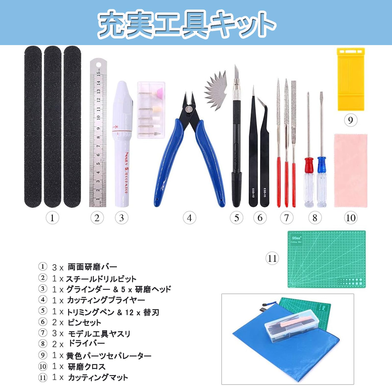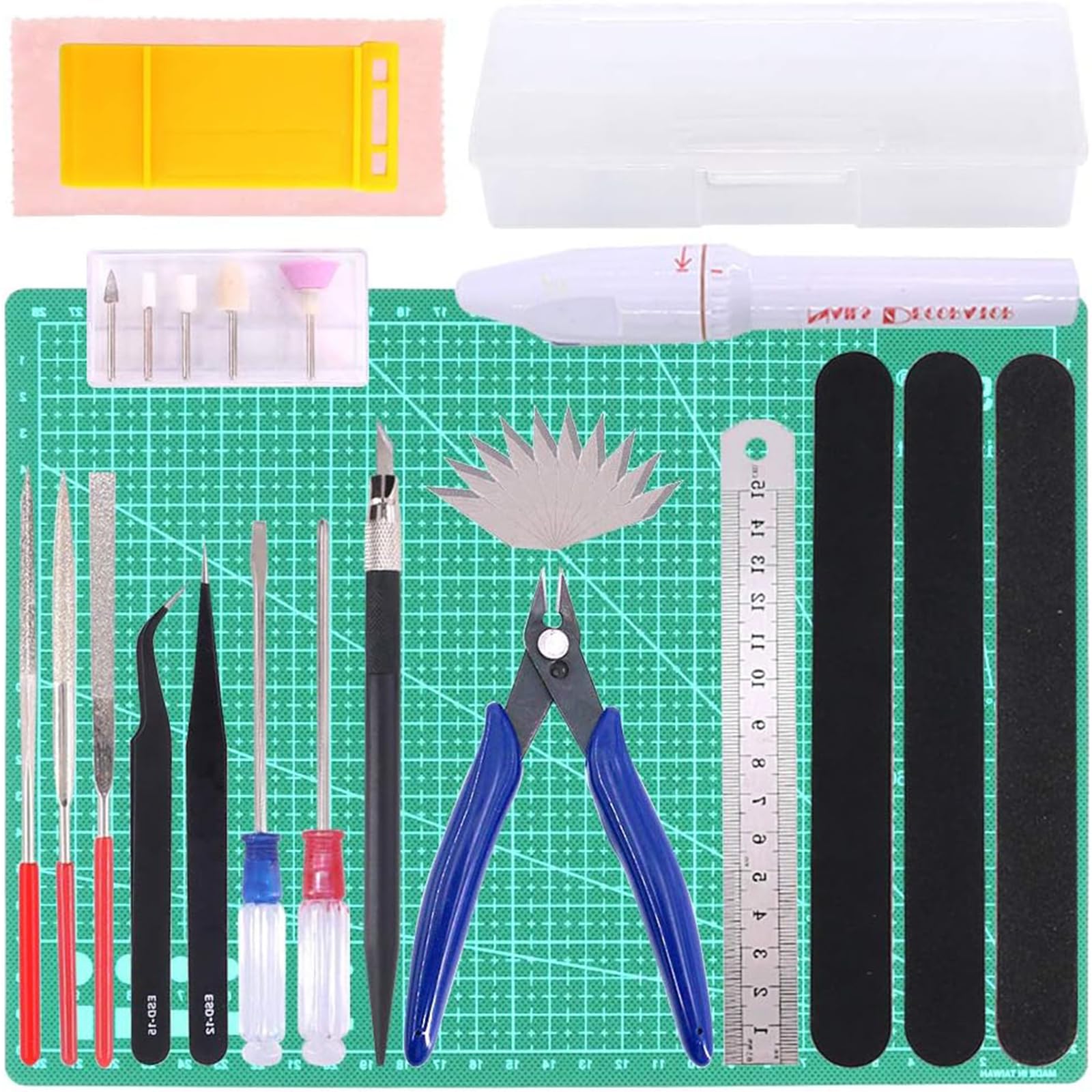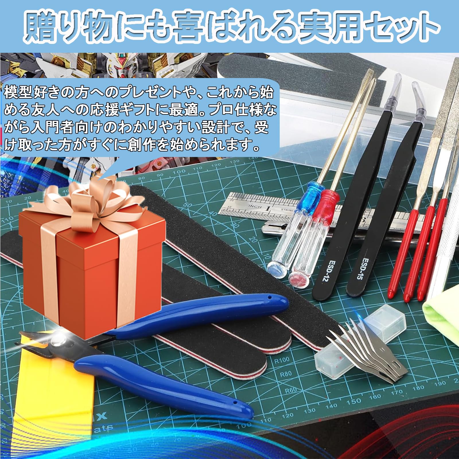 プラモデル工具キット ベーシックツールセット 薄刃ニッパー・研磨機・A4カット板付き29点モデルツールセット - モデル組み立て・彫刻・研磨に最適(収納ケース付)