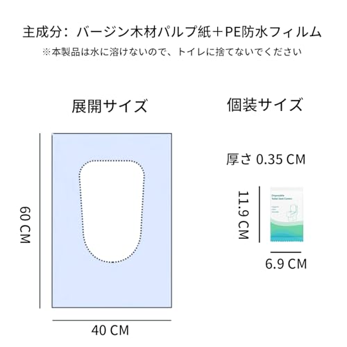 PoliLyn 使い捨て 便座シート 60枚入 便座カバー 防水 抗菌 衛生管理 旅行用 外出用 妊娠用 災害用 トイレ 個別包装 携帯 おまるシート
