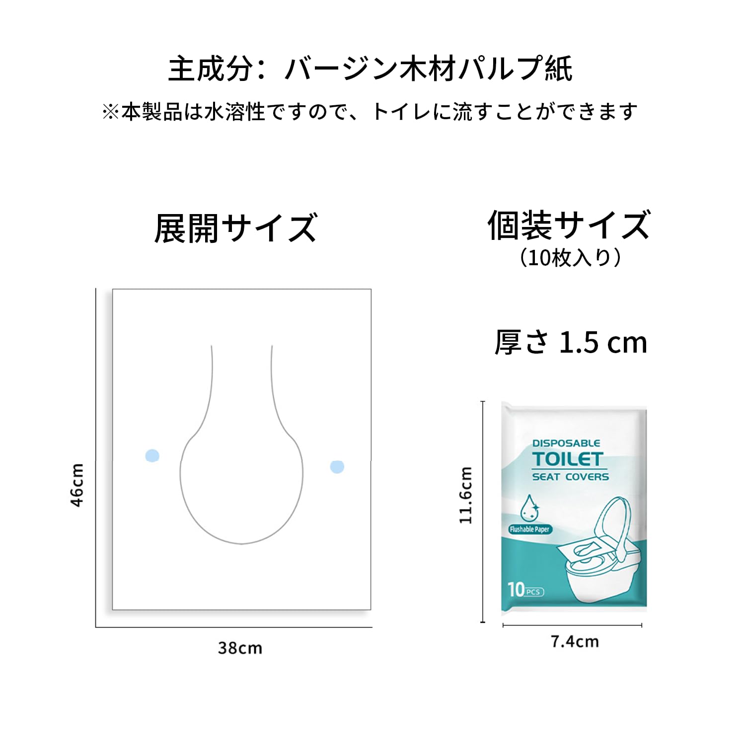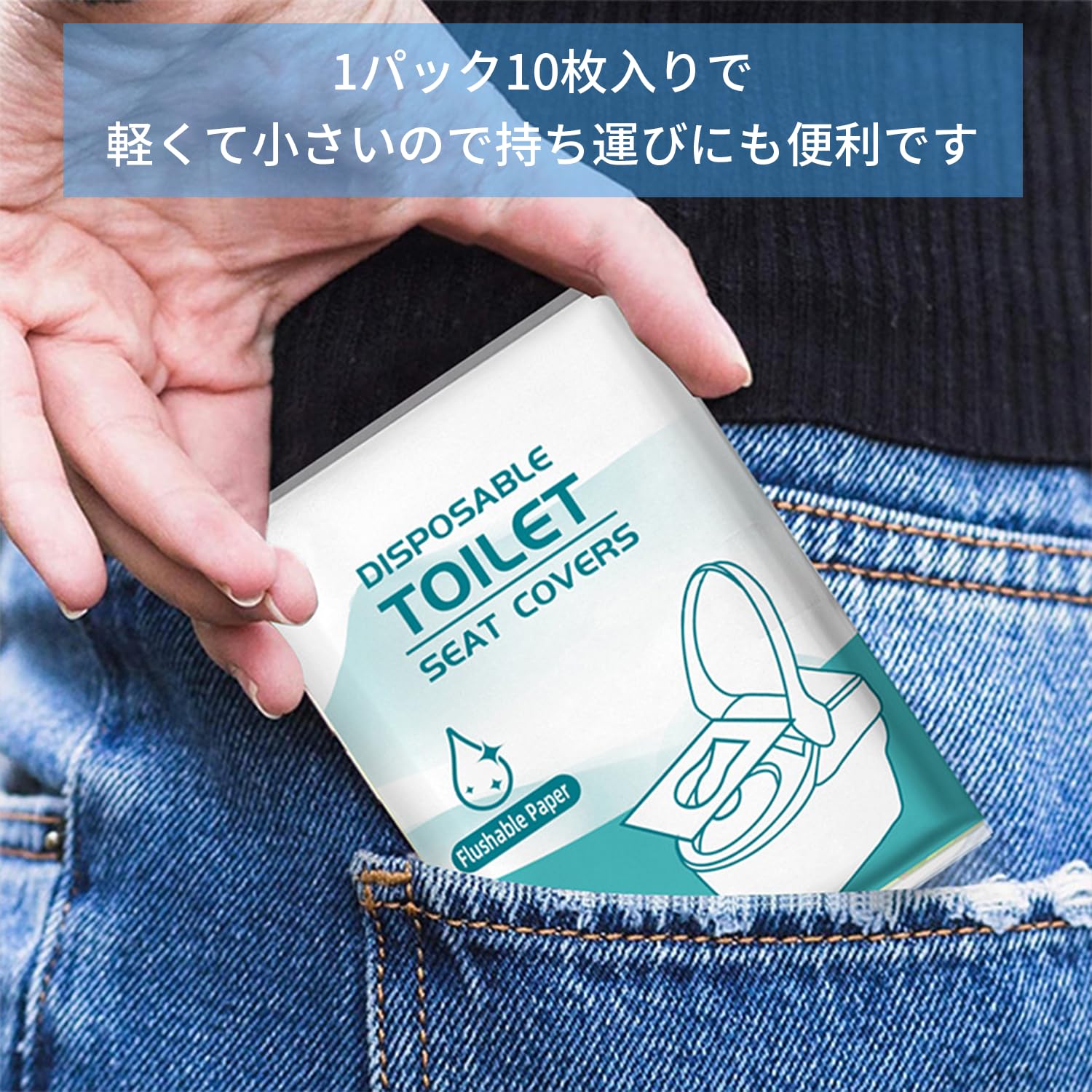 PoliLyn 便座シート 使い捨て 流せる 10枚入り×5パックセット 携帯用 ずれない便座シート 便座カバー トイレシート 抗菌 衛生管理 旅行 外出 防災用
