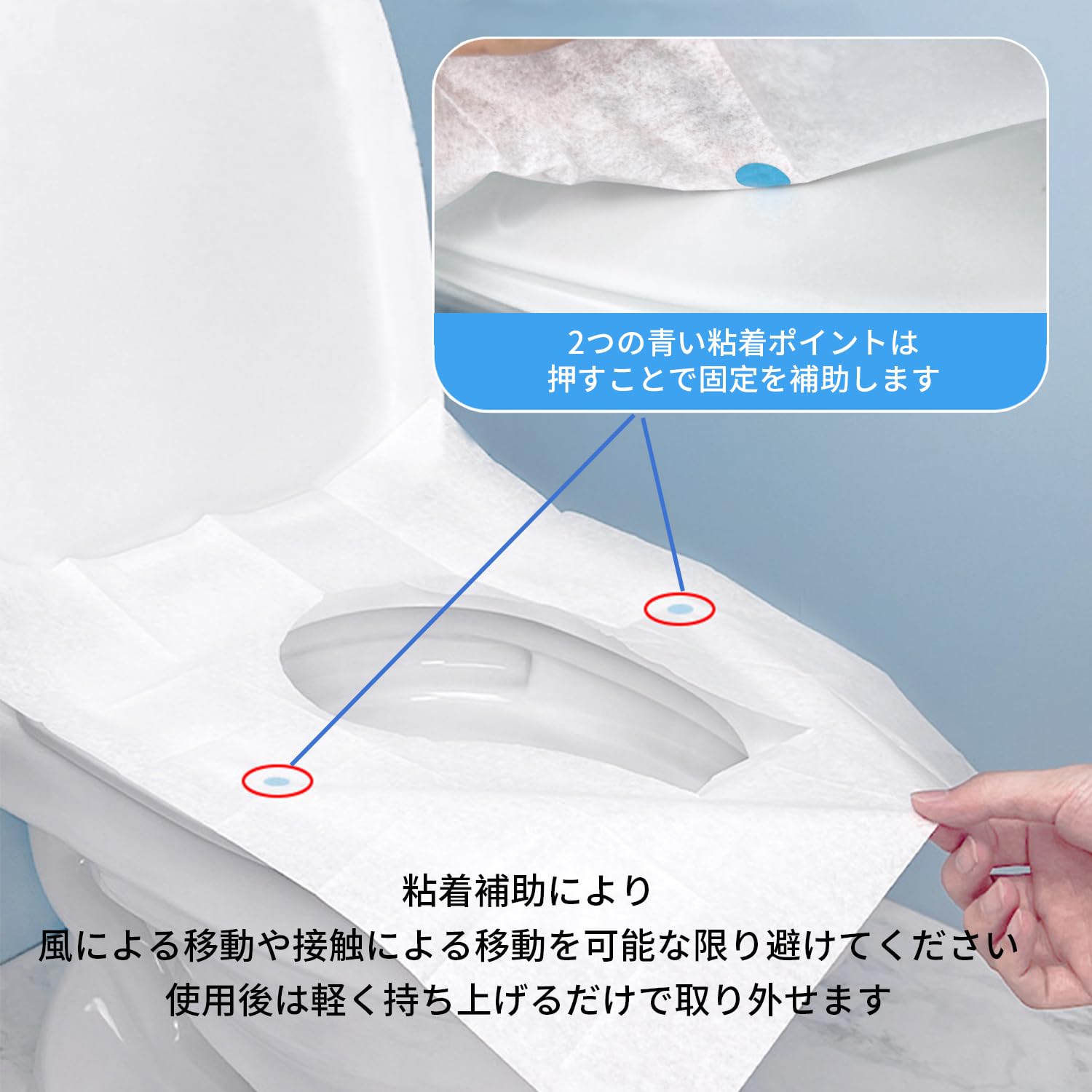 PoliLyn 使い捨て 便座シート ブルー60枚入 便座カバー 防水 抗菌 衛生管理 旅行用 外出用 妊娠用 災害用 トイレ 個別包装 携帯 おまるシート