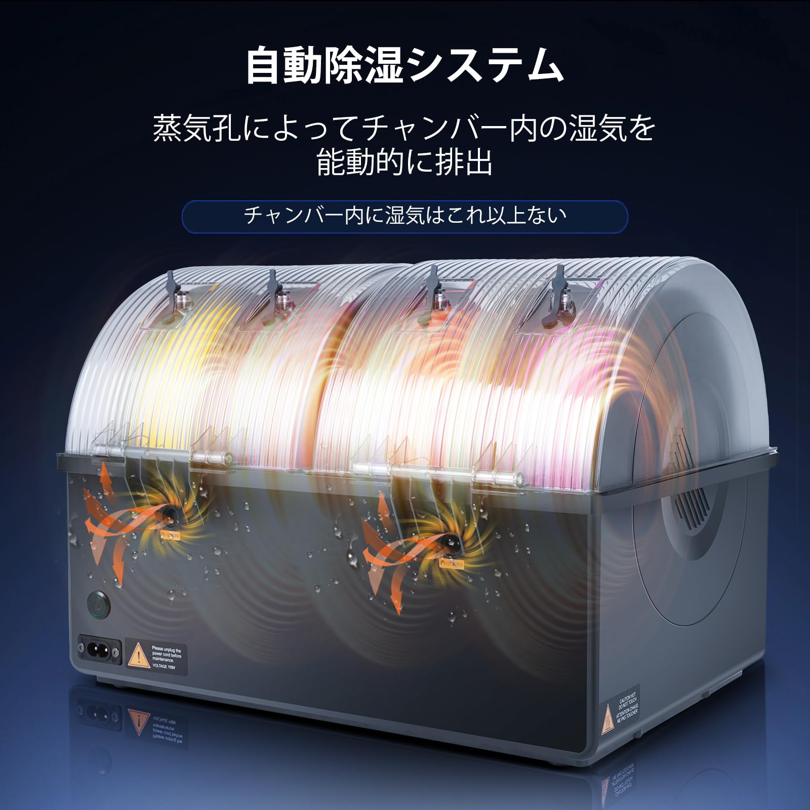 Comgrow フィラメントドライヤー ボックス SH02 150W PTCヒーター フィラメント密封収納ボックス 40℃~70℃ 温度調節可能 360°均一加熱 2スプールホルダー タッチスクリーン付き リアルタイム温度湿度表示 3Dプリンターフィラメント脱水機 PLA PETG TPU ABS 1.75/2.85mm対応 水分除去 除湿用