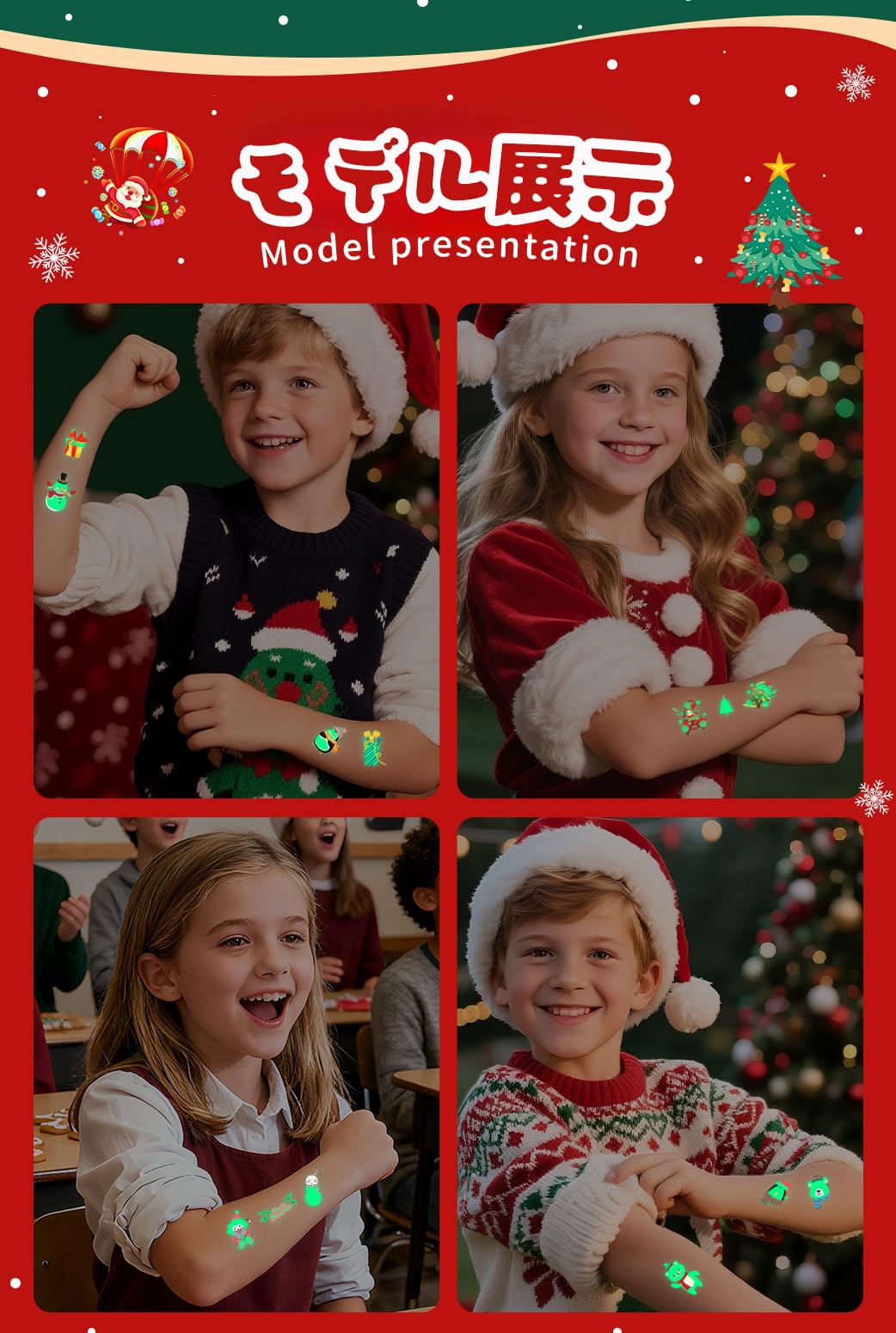 Ponko 夜光 タトゥーシール クリスマス 10枚セット 蓄光 サンタ トナカイ 雪の結晶 防水 おしゃれ かわいい 大人 子供 パーティー 冬 プレゼント