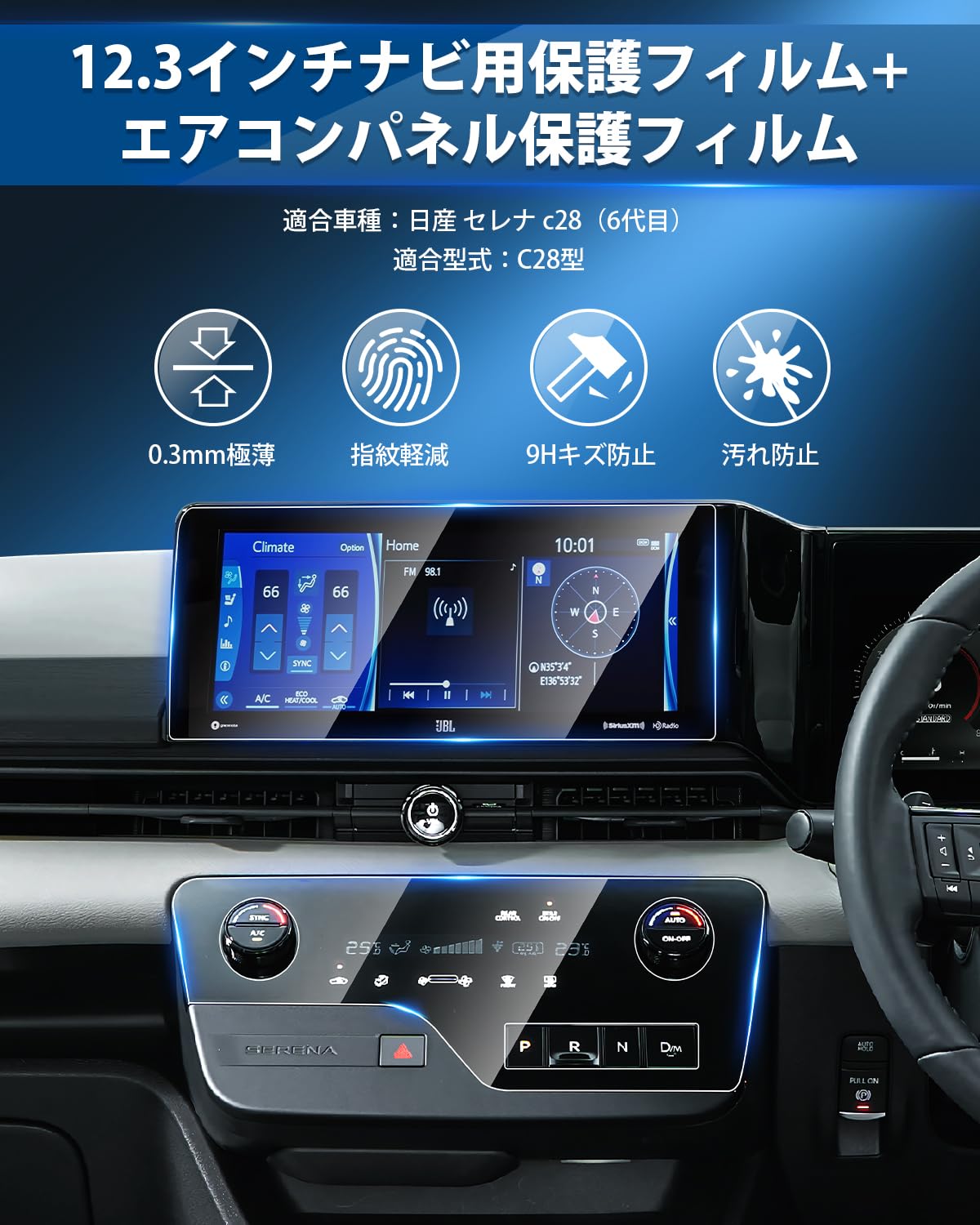 Lamicall 新型 日産 セレナ C28専用 ナビ保護ガラスフィルム 12.3インチ 1:1高精度カット 高透過率 9H強化ガラス フィルム 傷防止 高感度タッチ 撥水撥油 液晶保護フィルム 耐衝撃 反射防止 画面保護シート 自己吸着 貼付け簡単 スクリーン プロテクター カーナビ アクセサリー