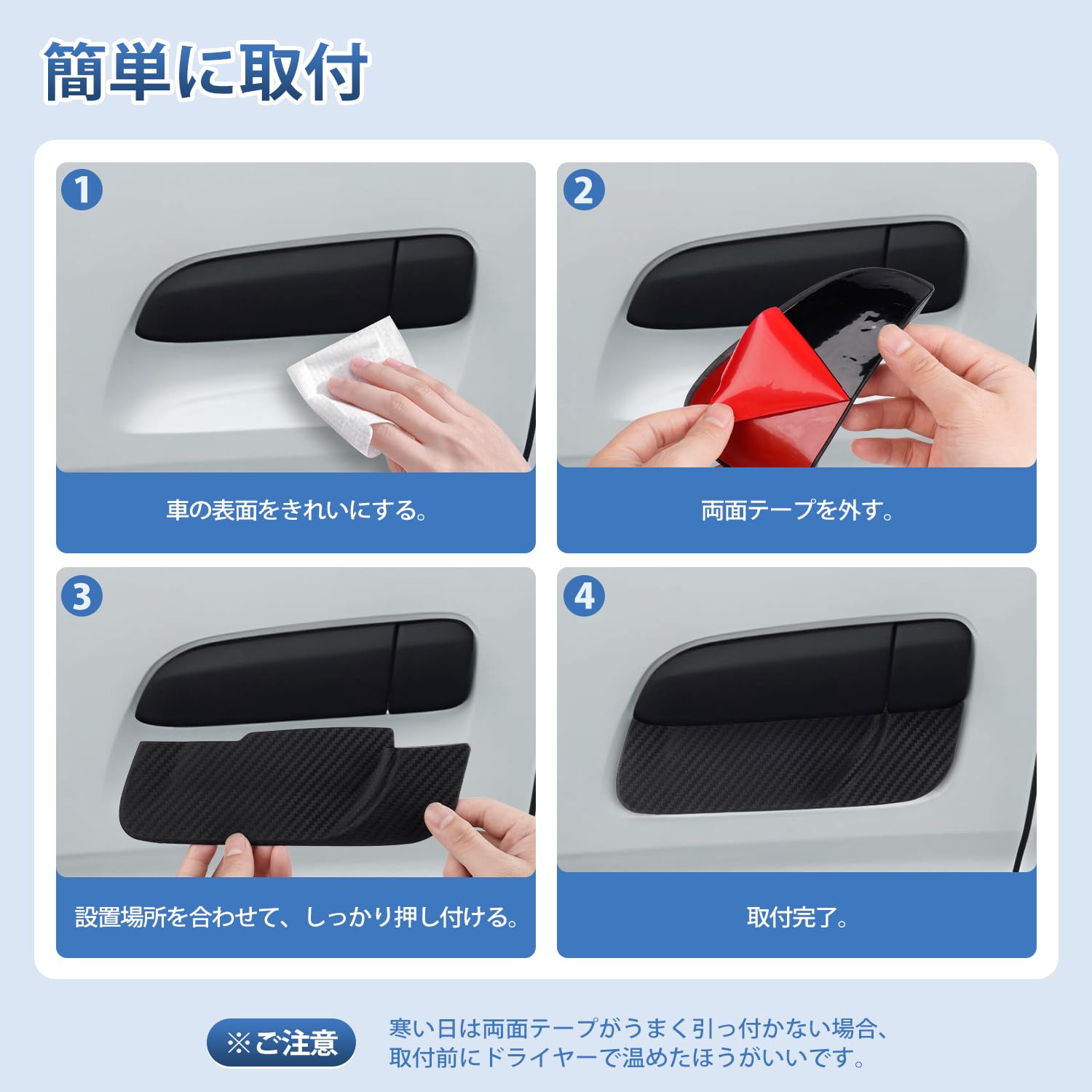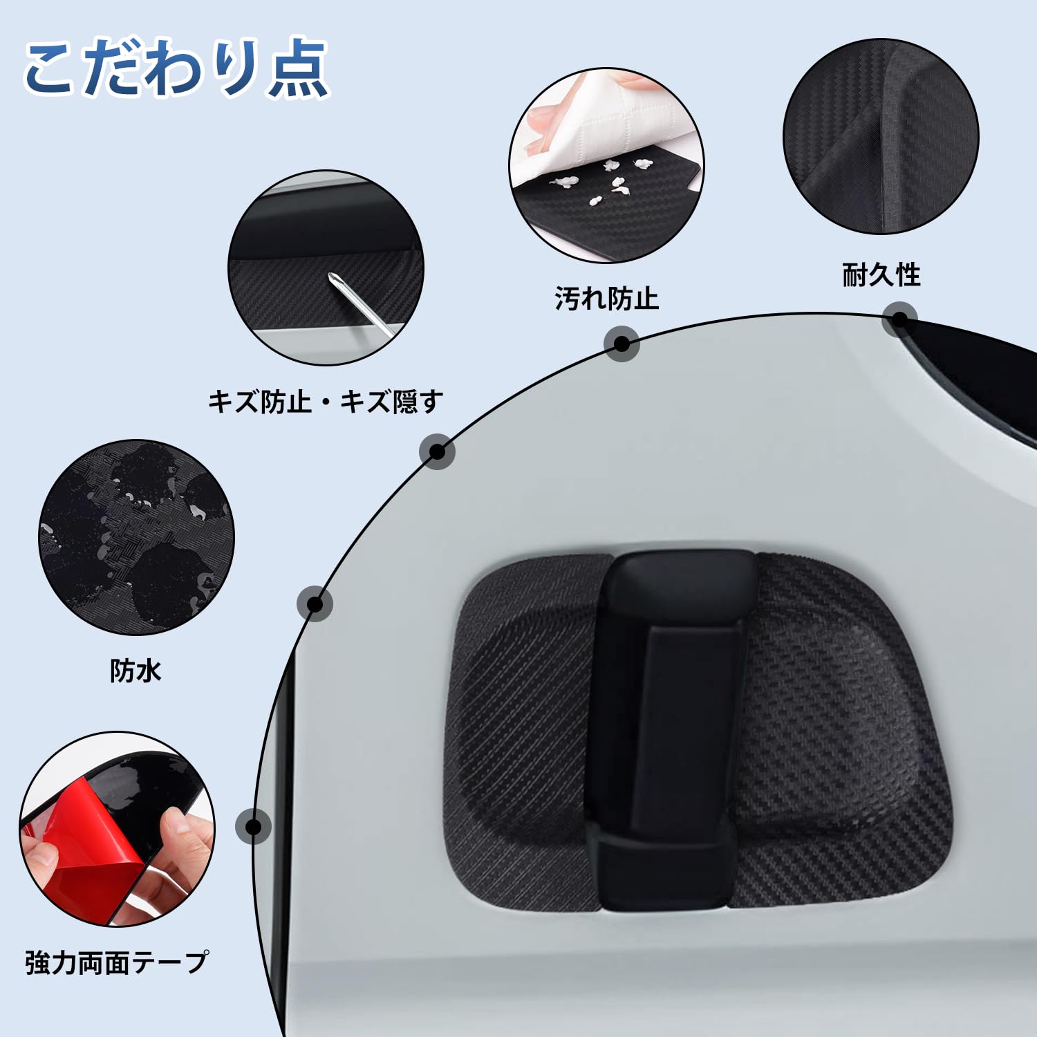 AUTO SPEC トヨタ ハイエース 200系 ドアハンドルプロテクター HIACE TRH2##/KDH2##/GDH2##系 ドアノブアンダーカバー 2004年~ 標準 ワイド ドアハンドル パーツ アクセサリー 室外ドアハンドル 傷防止 傷隠し 説明書付き カーボン プロテクションカバー 保護 キズ防止 装着簡単 6枚入れ