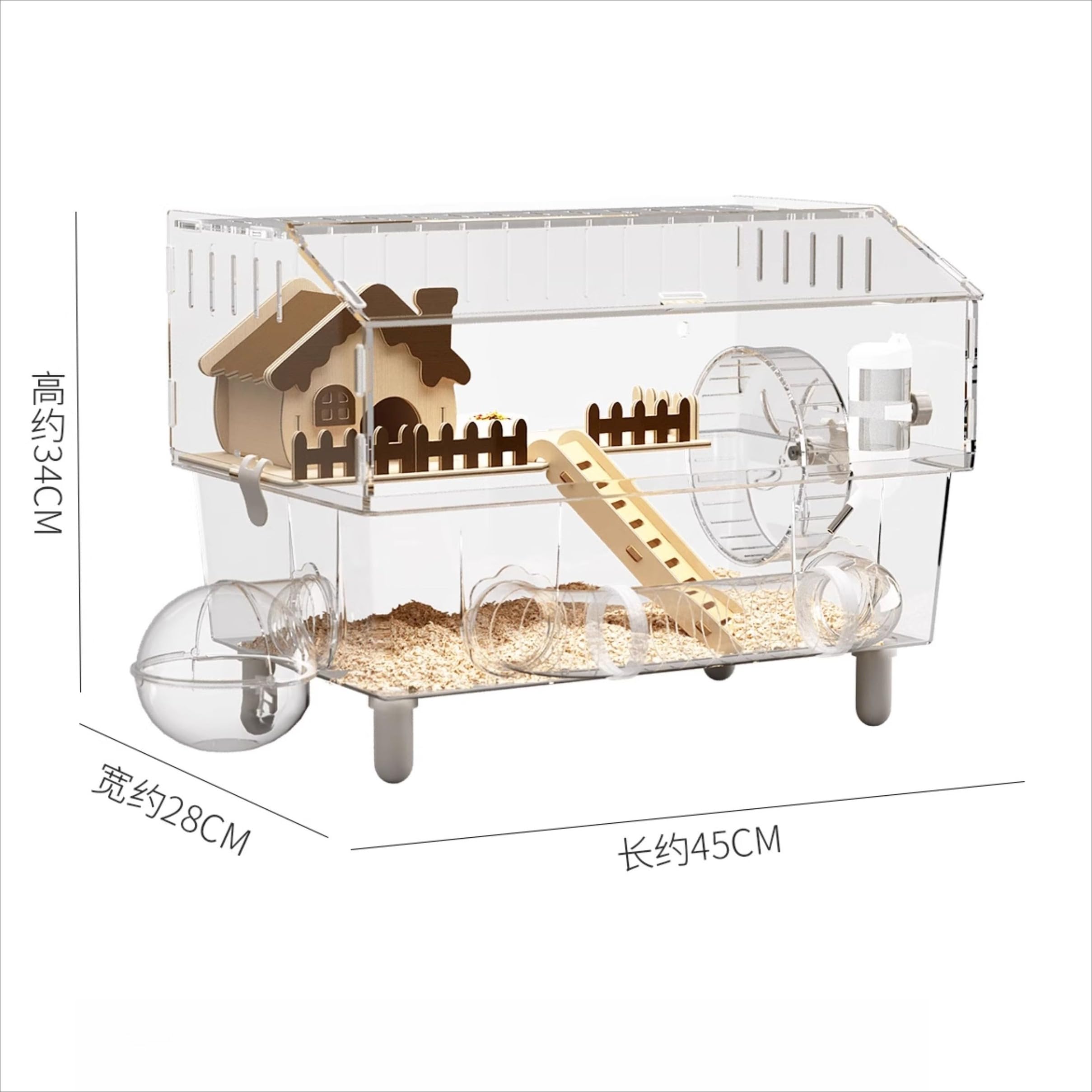 Ruexueの大型ハムスターケージ、ハムスターの二階建て大別荘,完全に透明で視認性が良く、厚みがあり、耐摩耗性と耐噛み性があり、換気と通気性があり、お手入れが簡単で、ハムスター、モルモット、ハリネズミ、トカゲ、その他の小さなペットに適しています。43x35x30.5cm