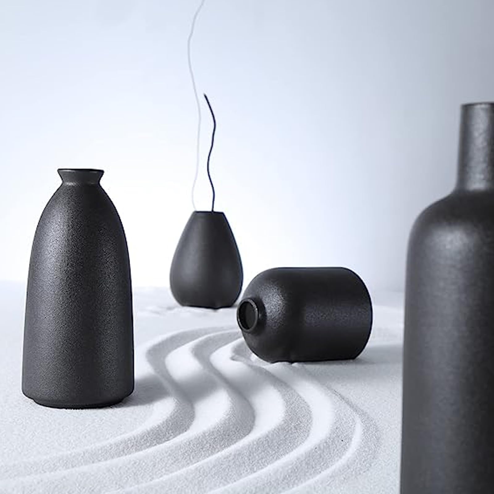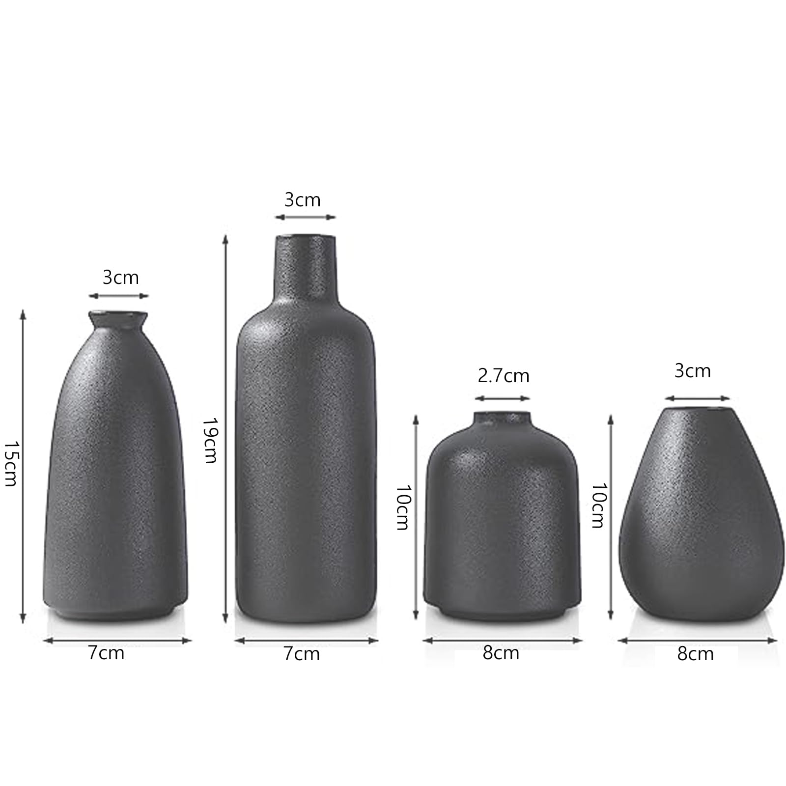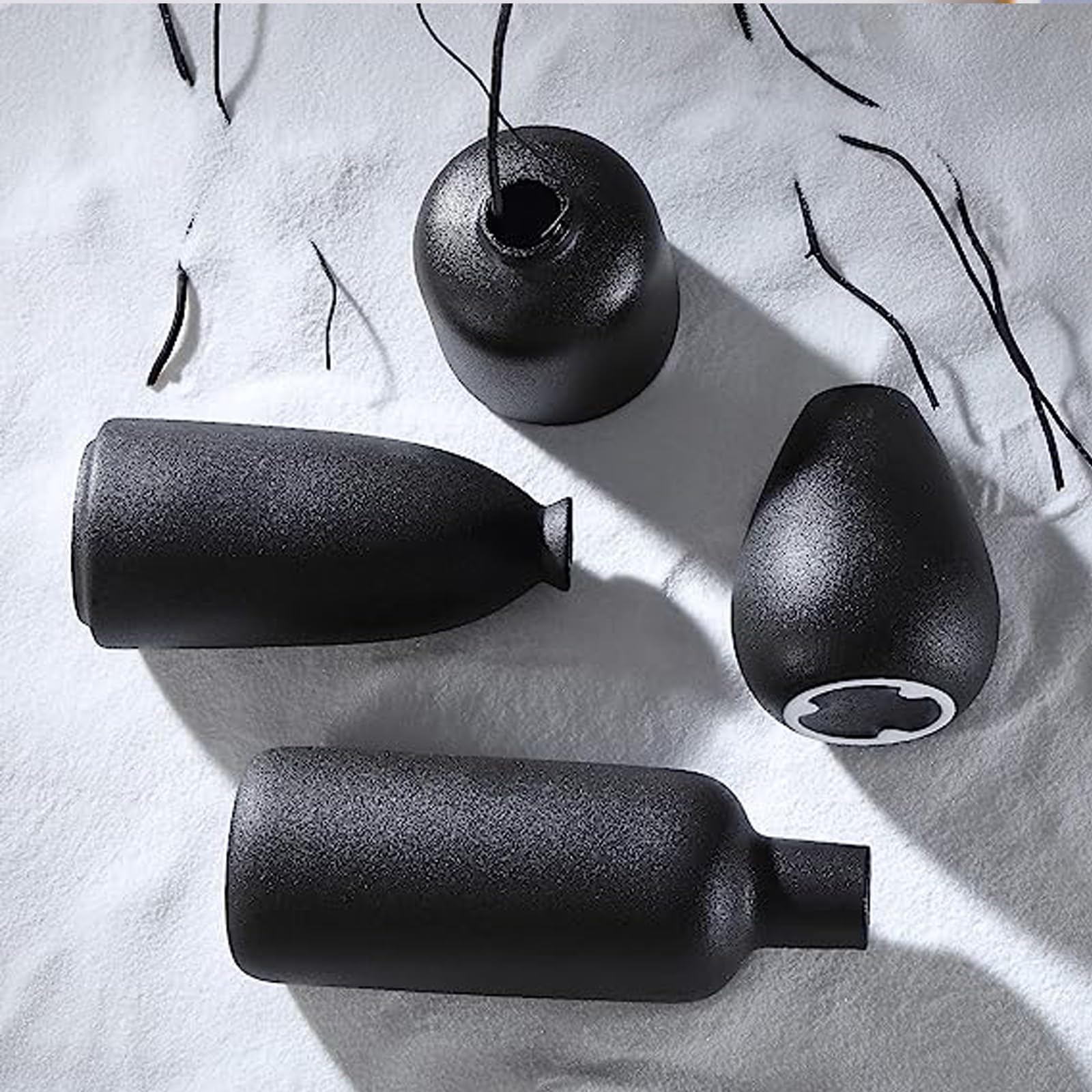 花瓶 陶器 おしゃれ 小さい 大きい 4点セッ 花器 フラワーベース 北欧 一輪挿し ドライフラワー 和風 植木鉢 インテリア飾り プレゼント YHOMBES(黑-4点入り)