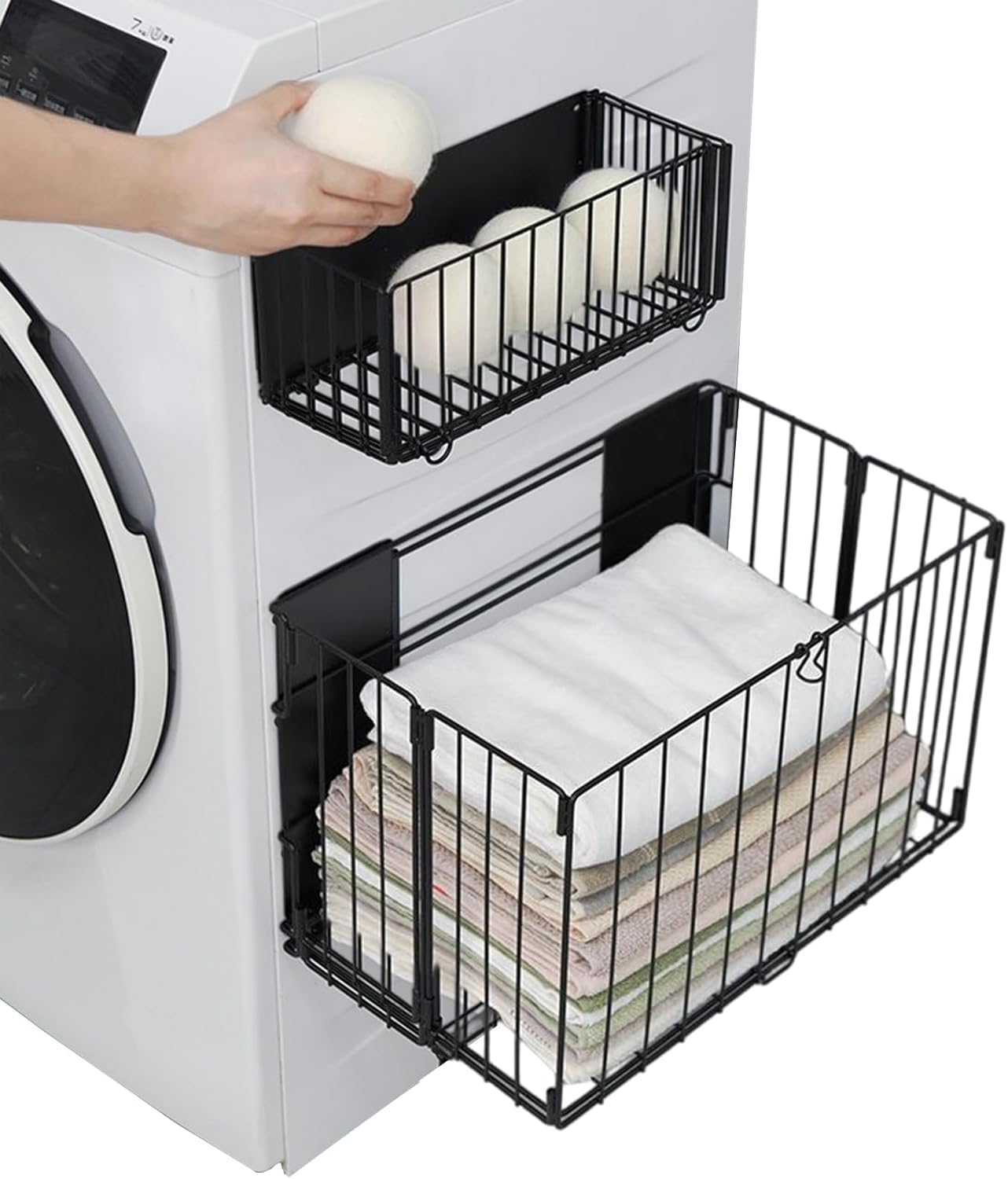 マグネット式 折りたたみ 収納バスケット 大容量 可変式 ランドリーバスケット 洗濯物 収納 コンパクト 折り畳み 浴室 洗面所 キッチン 冷蔵庫 サイド マグネット 付き 収納かご 耐荷重5kg (ブラック, Large)