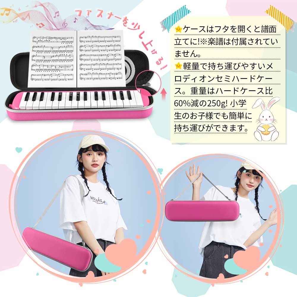 鍵盤ハーモニカ メロディピアノ 32鍵 ピアニカ メロディオン ホース+唄口セット 小学生 軽量 ABS樹脂 通学に優しいセミハードケース【お名前&音符シール付】