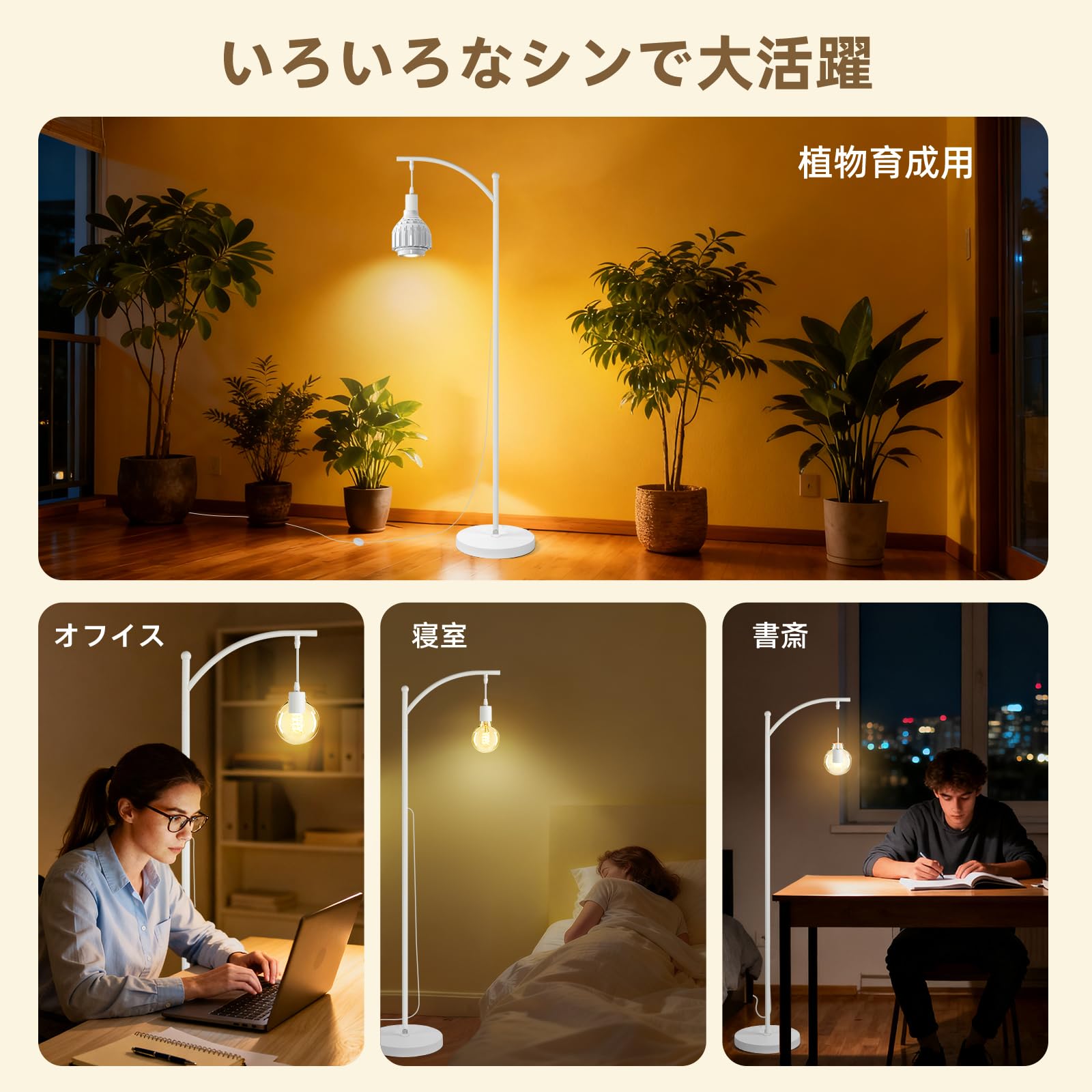 Aiwode 植物育成向けフロアスタンド(電球は付属しません),ソケット口金サイズE26,おしゃれなデザイン,簡単設置,耐高温セラミック,家庭用照明,植物ライト スタンド フットスイッチ付き,四段階調節高さ,安全設計,ホワイト