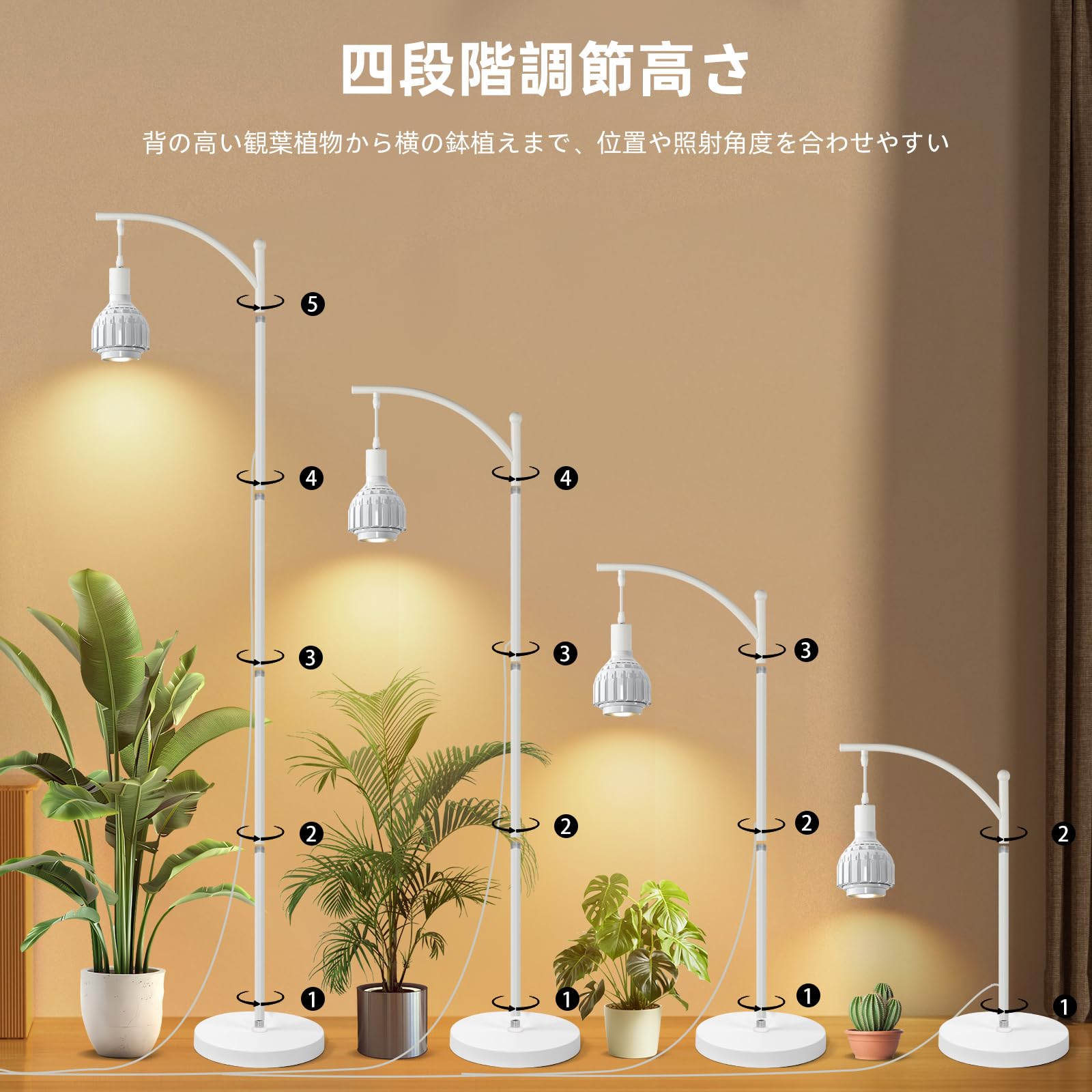 Pispoer 植物育成向けフロアスタンド,四段階調節高さ,ソケット口金サイズE26,フットスイッチ,ホワイト