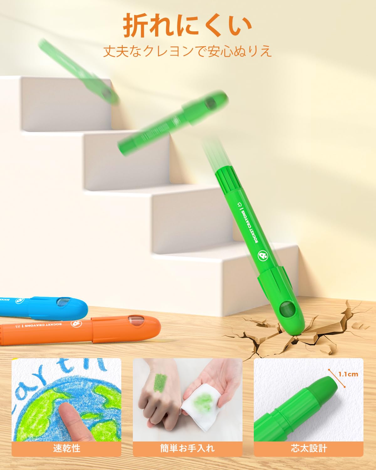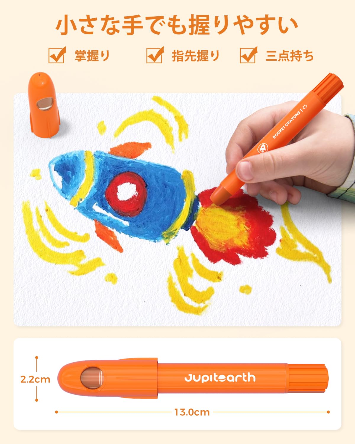 JUPITEARTH クレヨン ロケットタイプ 繰り出し式 12色 パステルカラー 繰り出し式 かわいい 色鉛筆 持ちやすい 手汚れない 折れにくい 安全 無毒 水で落とせる 塗り絵 落書き お絵描き 絵の具 セット 小学生 赤ちゃん 幼児