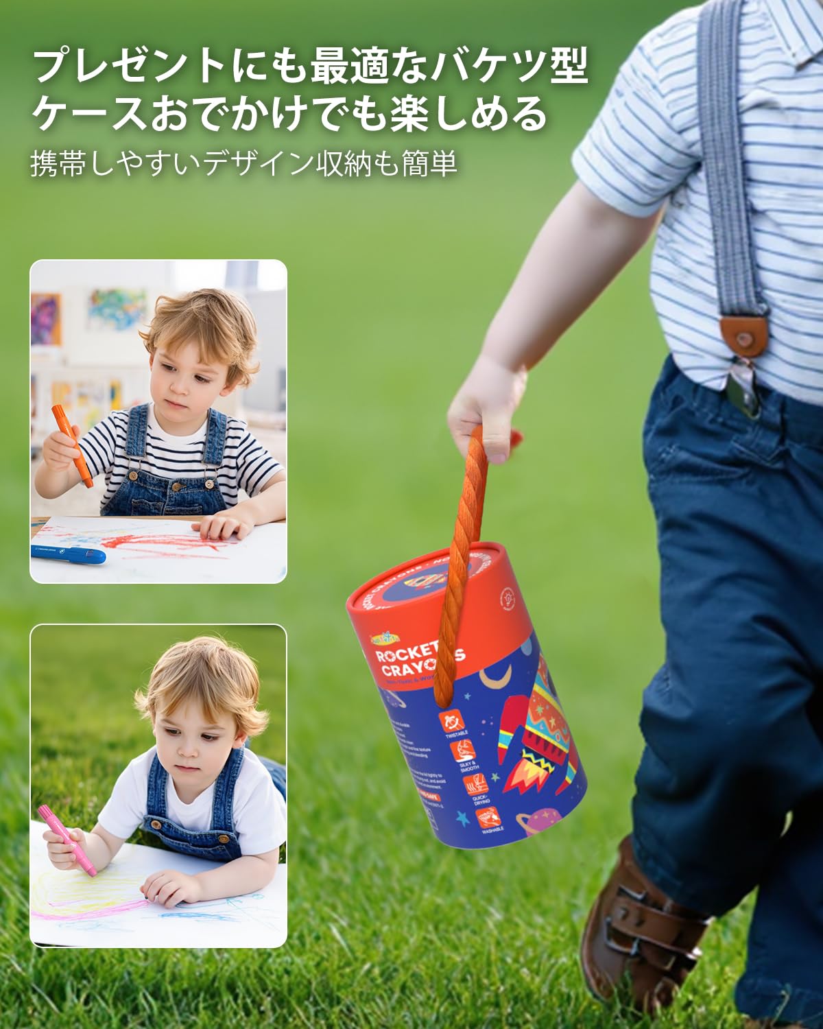 JUPITEARTH クレヨン ロケットタイプ 繰り出し式 24色 パステルカラー 繰り出し式 かわいい 色鉛筆 持ちやすい 手汚れない 折れにくい 安全 無毒 水で落とせる 塗り絵 落書き お絵描き 絵の具 セット 小学生 赤ちゃん 幼児