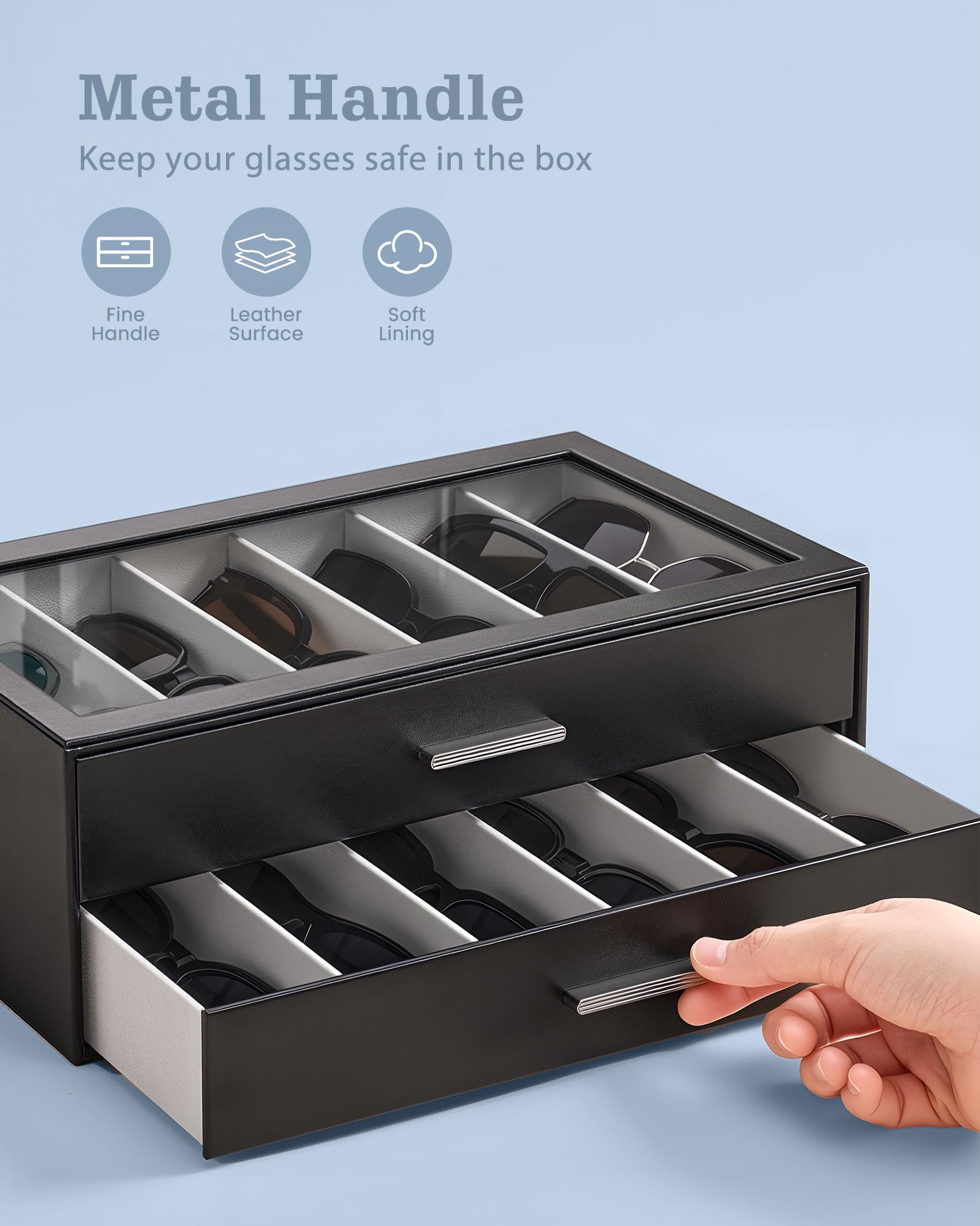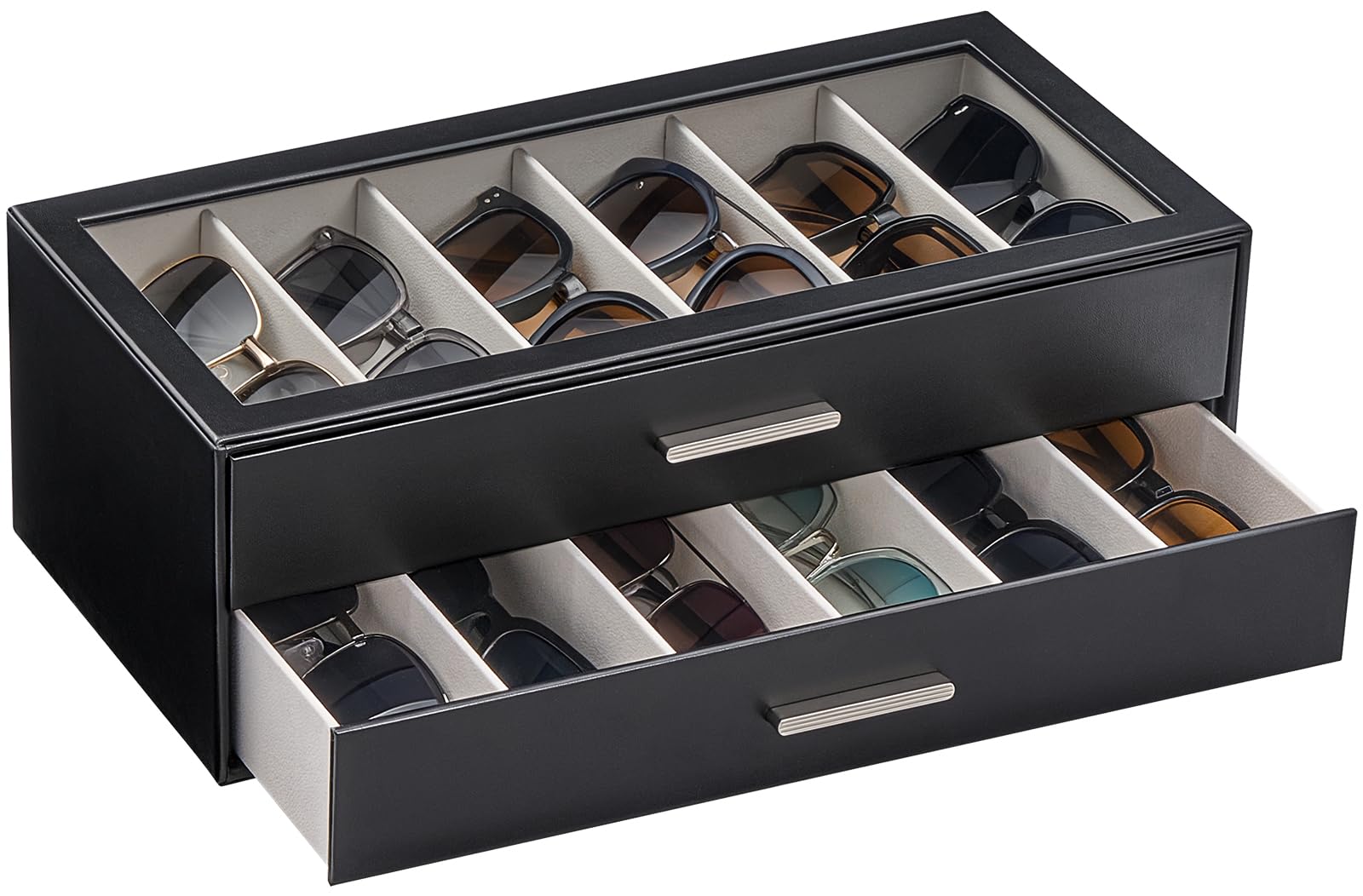 [ProCase] サングラスケース[12本用] メガネ・アクセサリー収納ボックス 2段式 アクリル蓋 PU素材 眼鏡・ジュエリ管理 コレクションケース