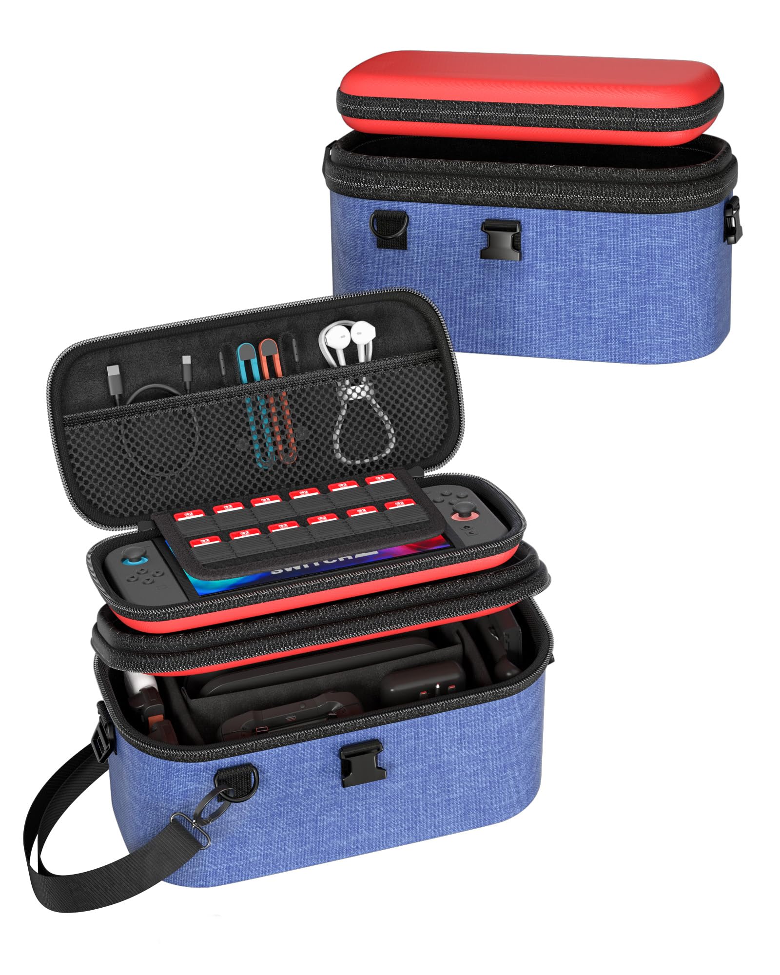 ProCase Switch2 ケース 2025年モデル専用 トラベルケース ハード 大容量 持ち運び便利 耐衝撃 防塵 赤&青