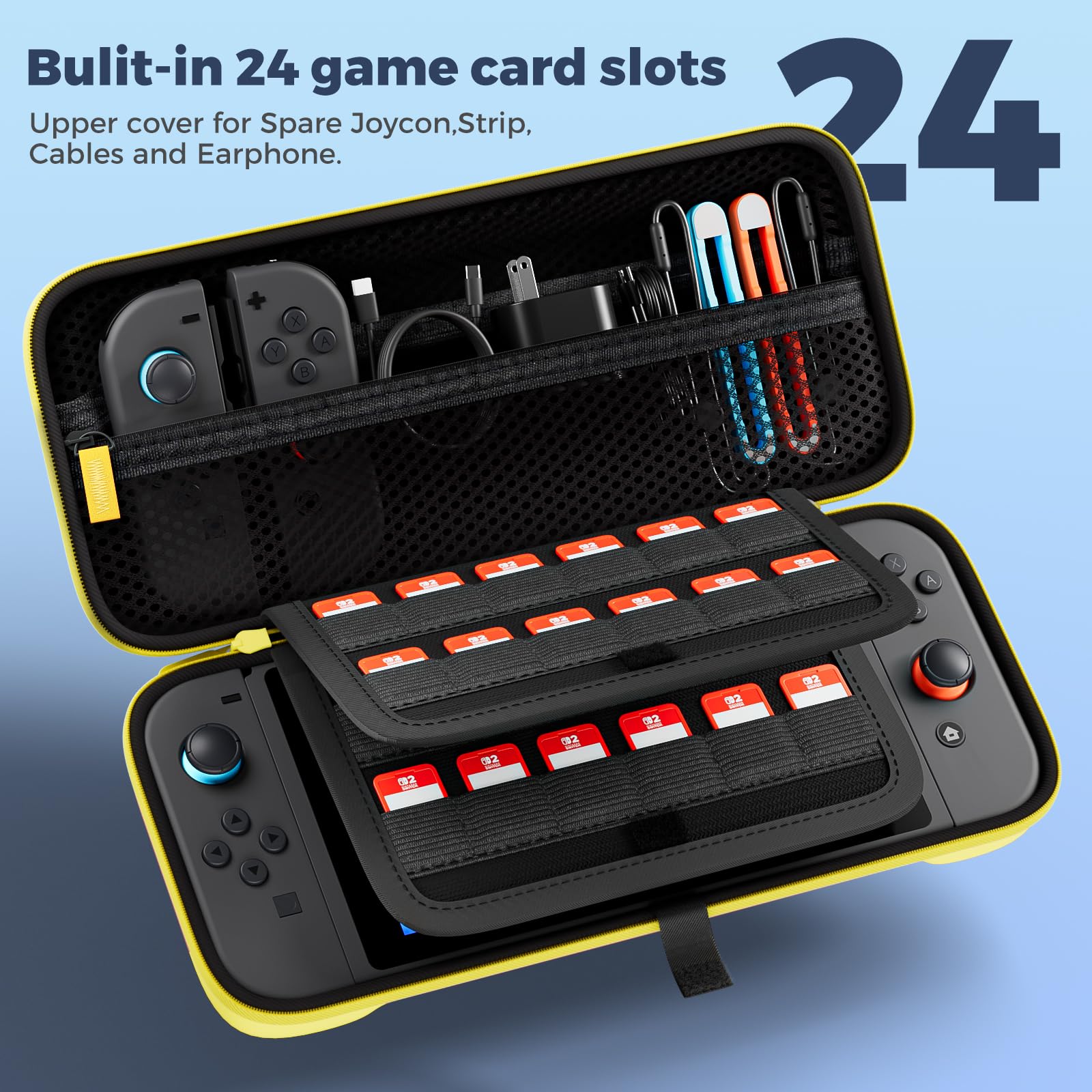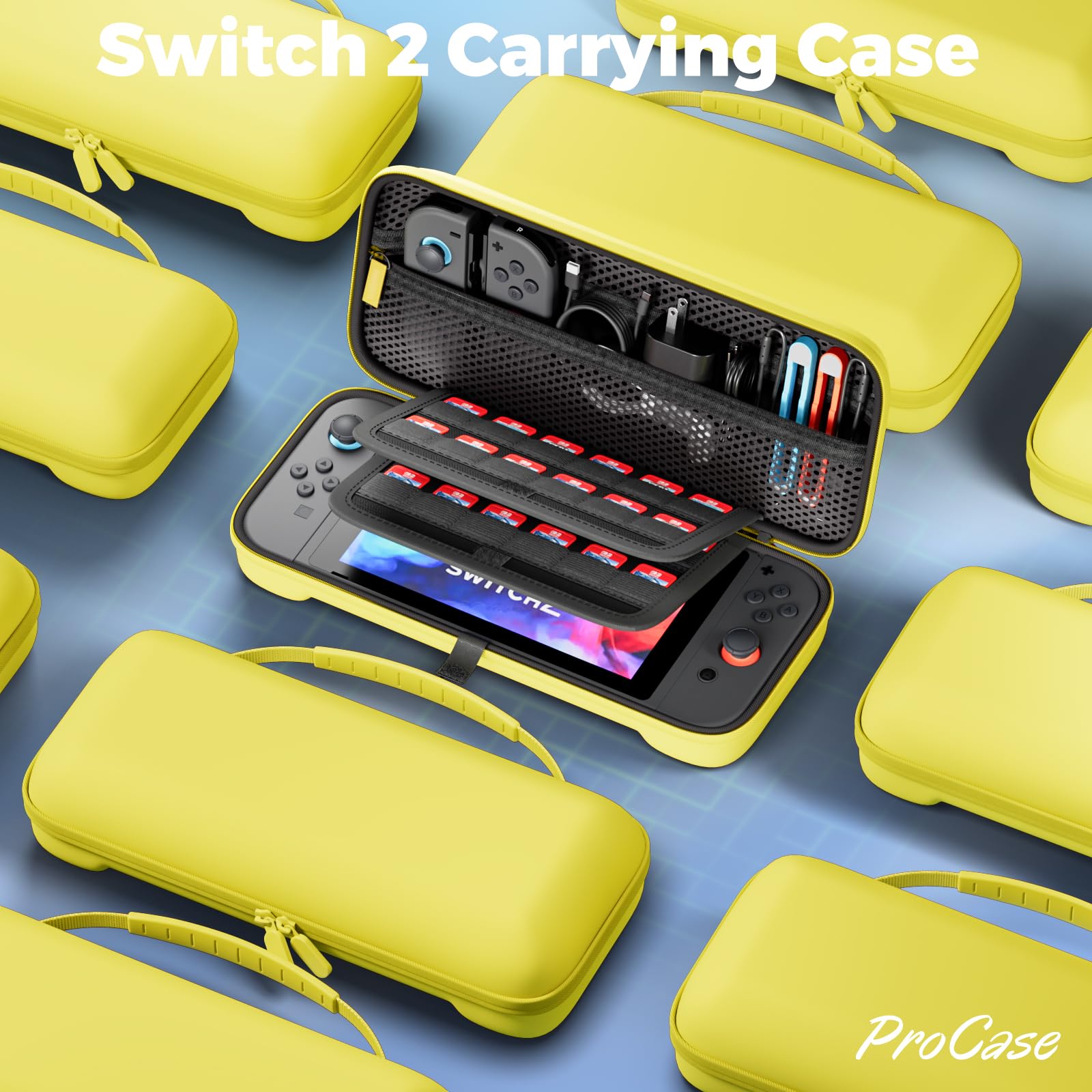 ProCase Switch 2 ケース スイッチ2 2025年モデル専用 24枚のゲームカード収納可 ハード 持ち運び便利 キャリングケース 耐衝撃 充電器やケーブル収納 周辺機器