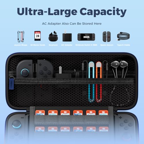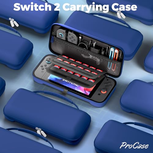 ProCase Switch 2 ケース スイッチ2 2025年モデル専用 24枚のゲームカード収納可 ハード 持ち運び便利 キャリングケース 耐衝撃 充電器やケーブル収納 周辺機器