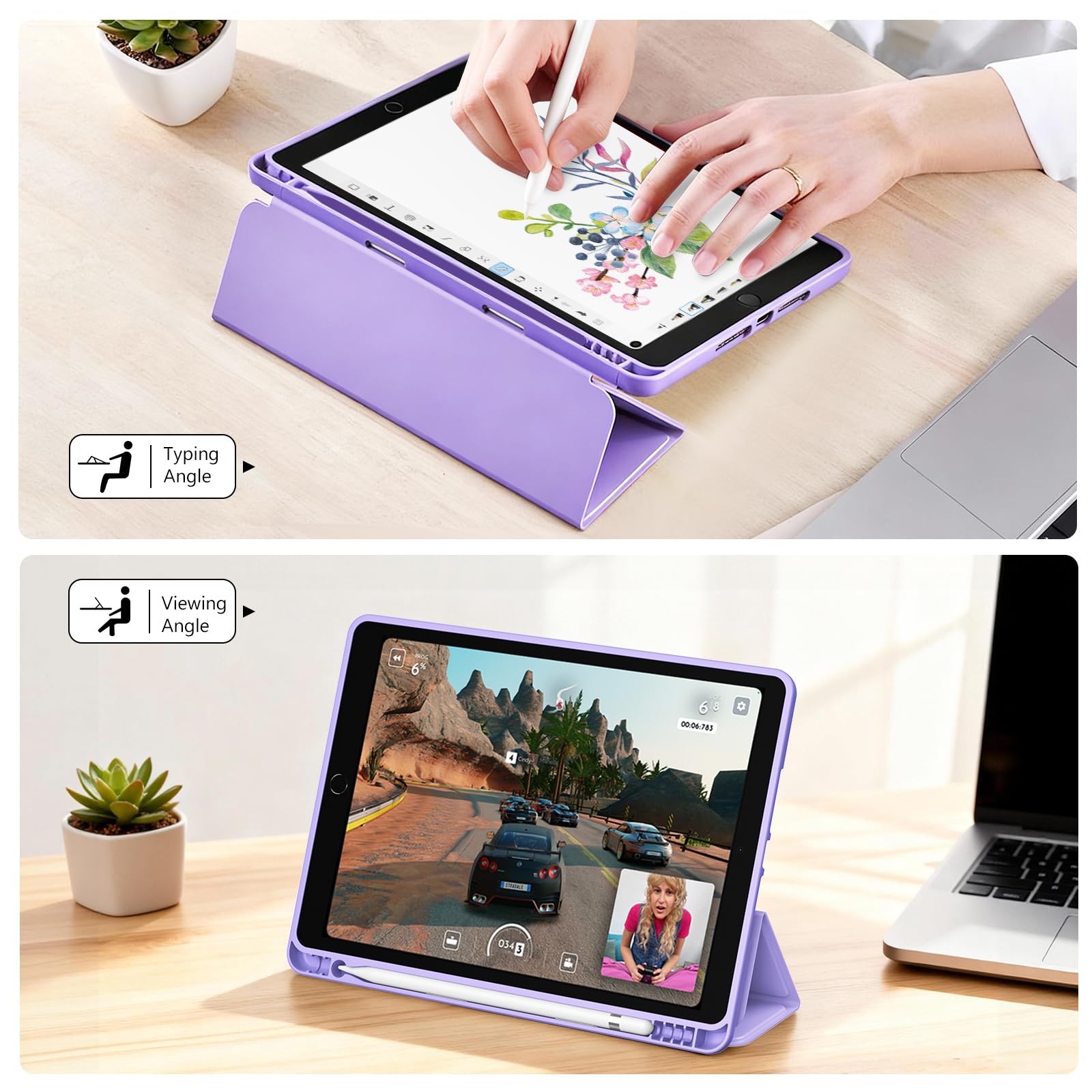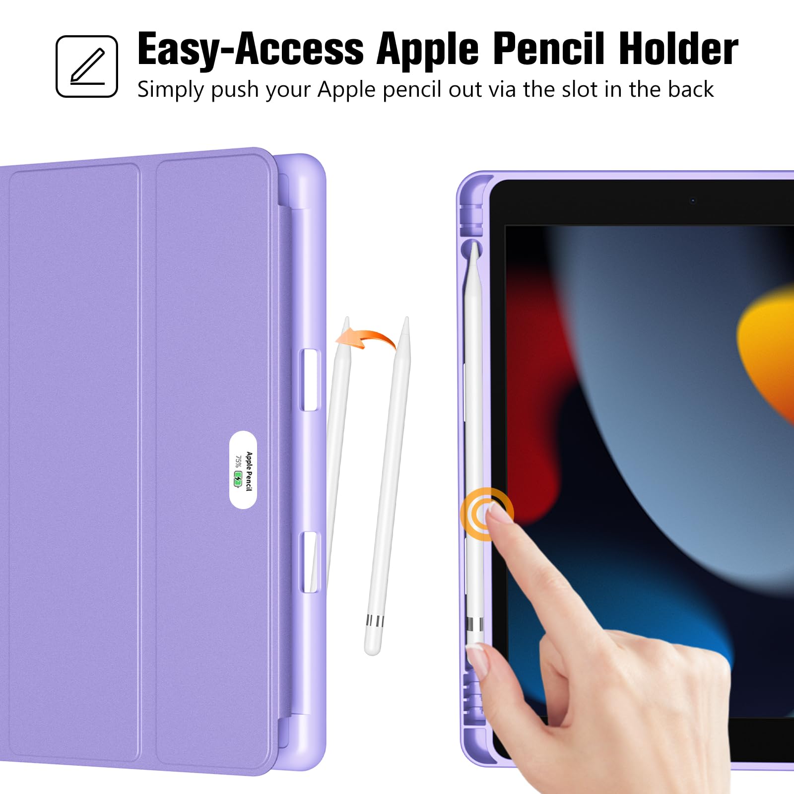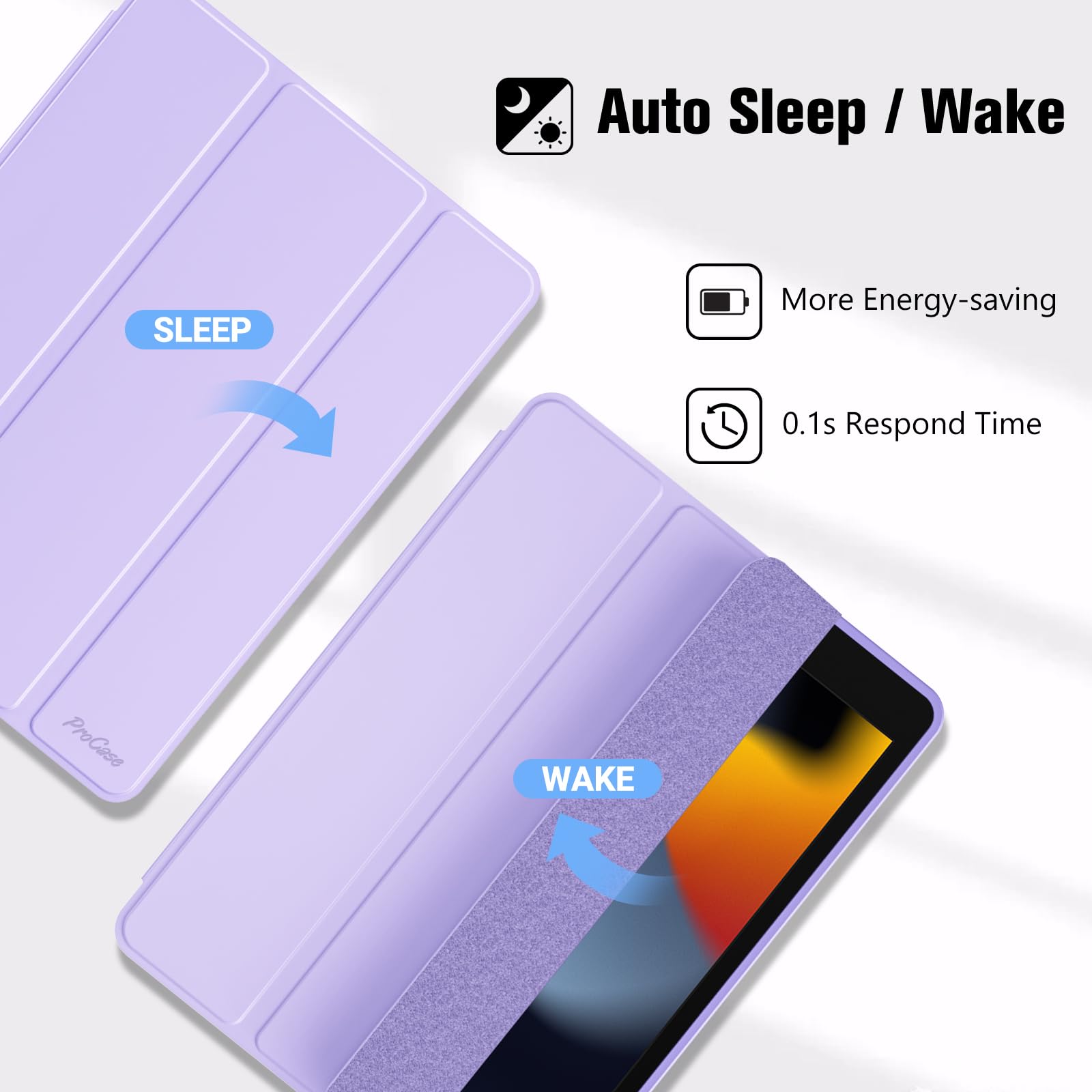 ProCase スマートケース iPad 9/8/7世代対応(2021 2020 2019) 10.2インチ ソフトカバー 軽量 オートスリープ/ウェイクに対応 アップルペンシル収納 耐衝撃 - パープル