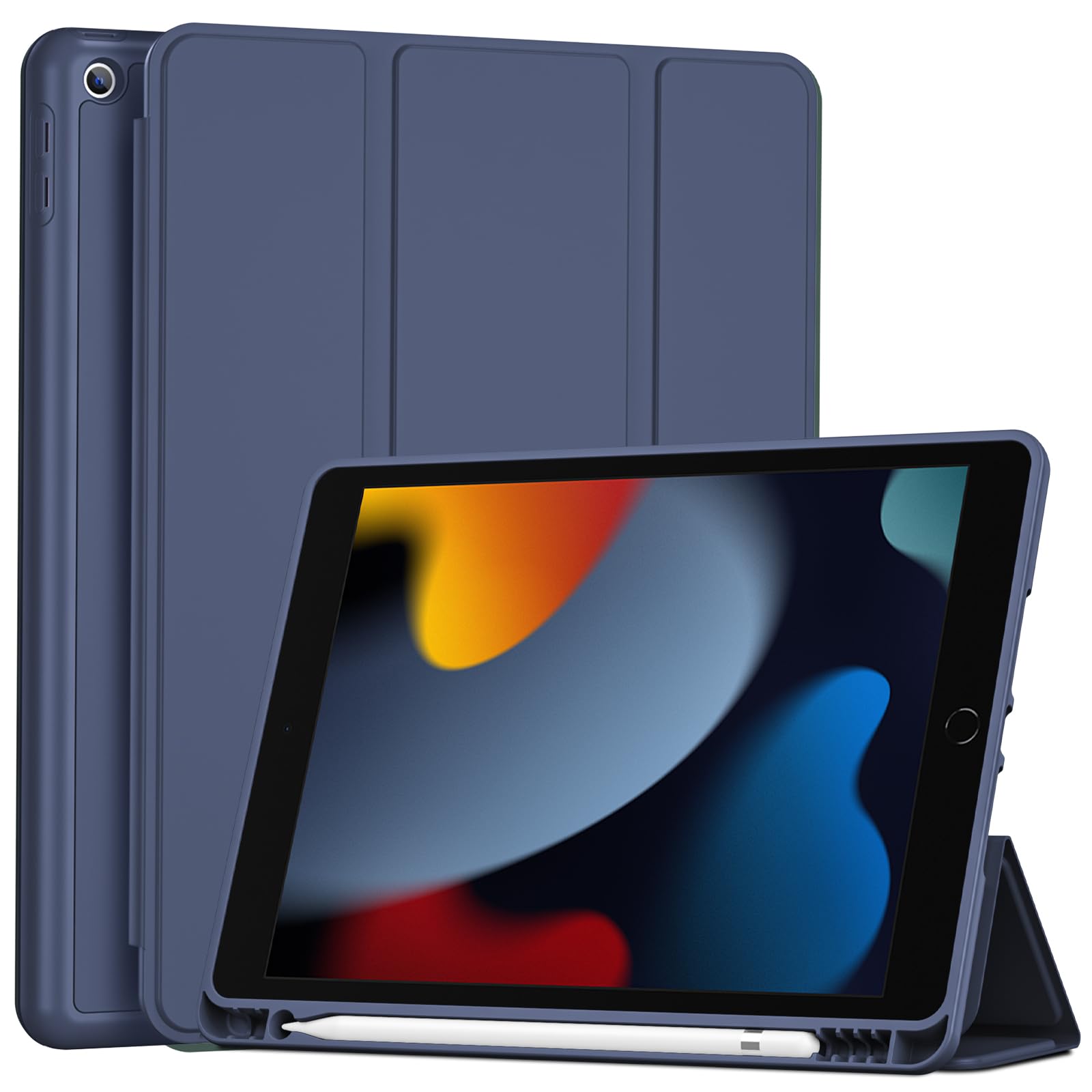 ProCase スマートケース iPad 9/8/7世代対応(2021 2020 2019) 10.2インチ ソフトカバー 軽量 オートスリープ/ウェイクに対応 アップルペンシル収納 耐衝撃 - ネイビー