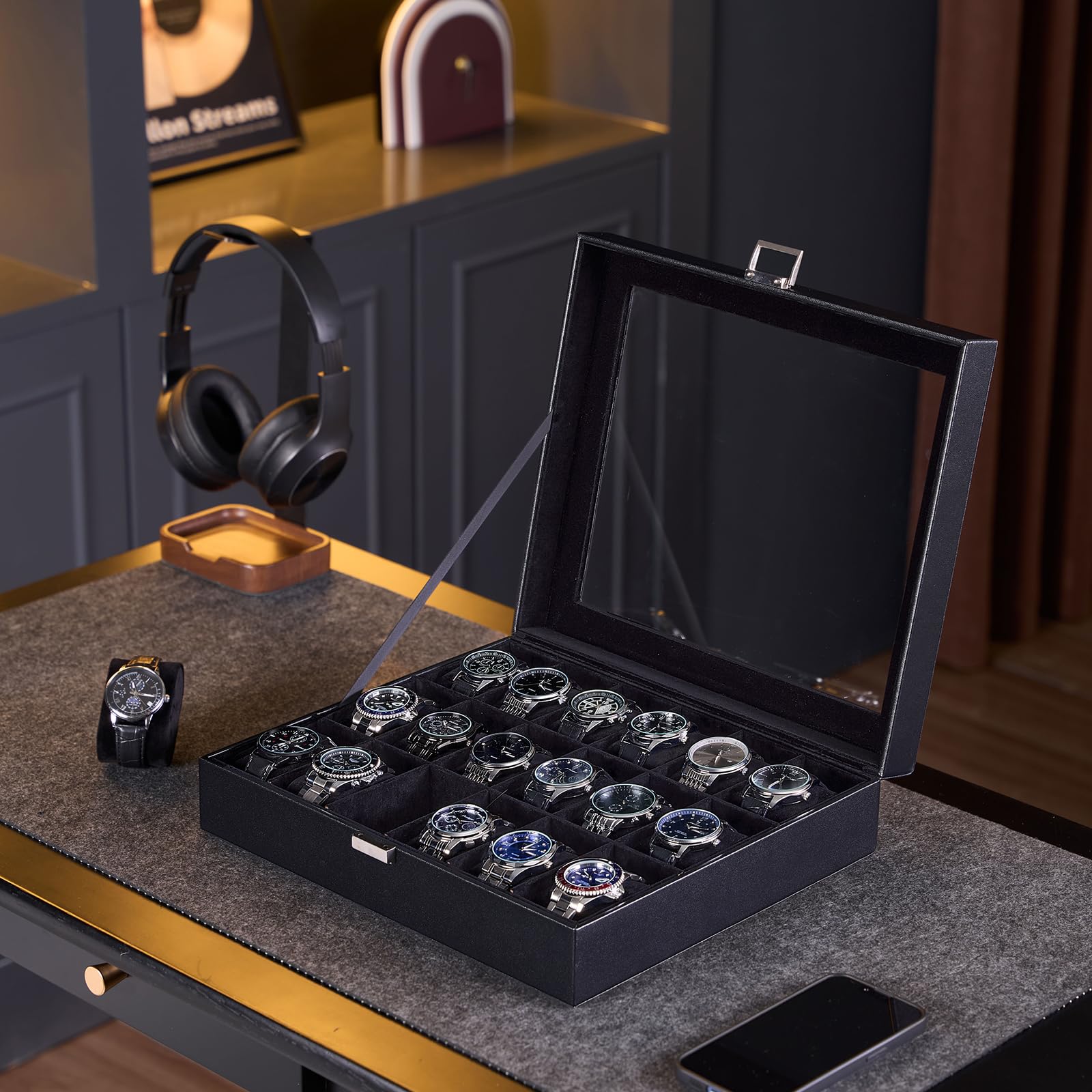 ProCase 腕時計ケース 21本 PU製 ウオッチボックス 男女兼用 収納ボックス アクセサリーケース アクセサリー 収納 ディスプレイ 小物整理 誕生日 記念日プレゼント -ブラック